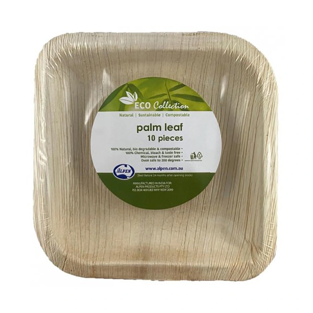 Includes 10 Palm Leaf Square Plate Measures 150mm Totally natural! Eco Friendly No pulp, no starch, just a washed and pressed leaf. High-Quality Coordinate with other party supplies and party tableware COMPOSTABLE: 100% compostable. Break down within 60 days BIODEGRADABLE: Naturally biodegrades in fewer than 2 months after disposal RENEWABLE SOURCE: Made only of fallen palm leaves that are gathered, cleaned and pressed HEAT RESISTANCE: You can comfortably hold the bowl or plate of hot food without burning your hand! OVEN SAFE: Can be used to cook food in oven up to 250 degrees for up to 45 minutes LIQUID SAFE: Palm Leaf foodware is superior and is ideal for soups, curries or any other liquid foods MICROWAVABLE: It’s perfectly safe to heat plates in the microwave for up to 2 minutes