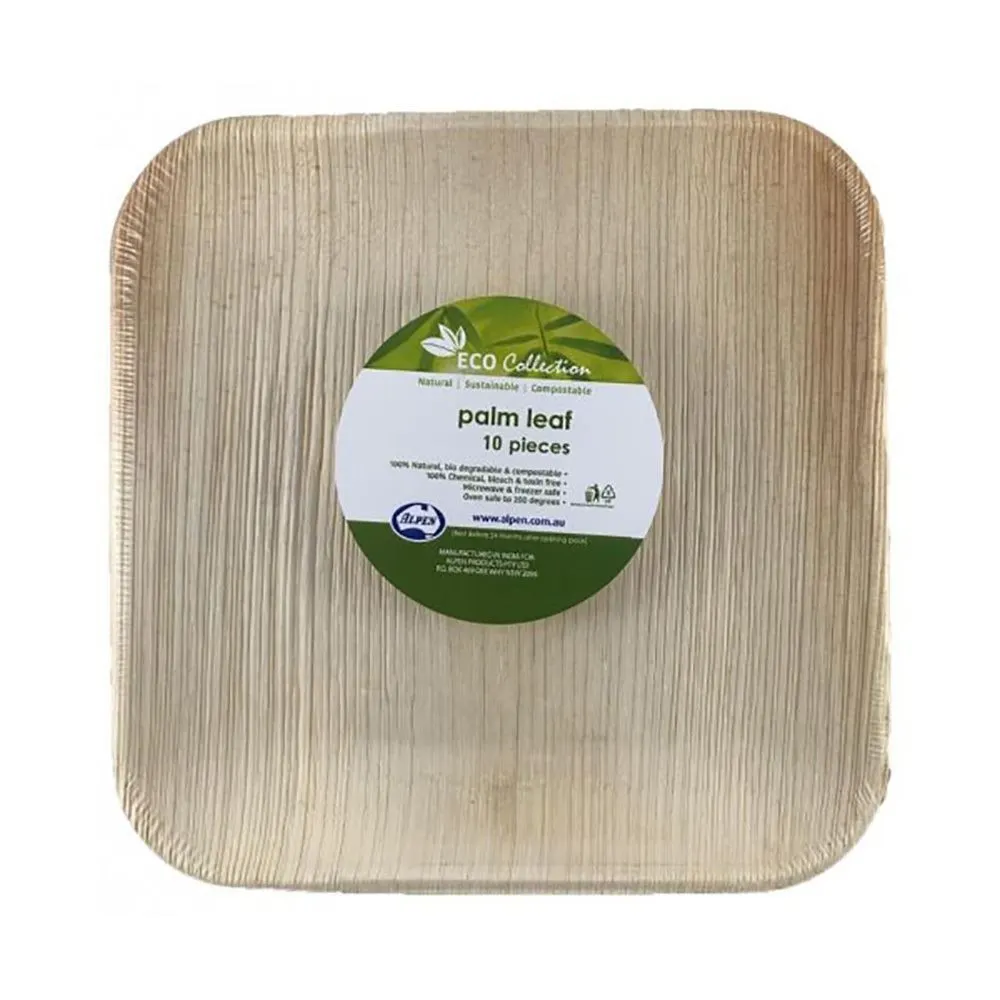 Includes 10 Palm leaf Square Plate Measures 20cm Totally natural! Eco Friendly No pulp, no starch, just a washed and pressed leaf. High-Quality Coordinate with other party supplies and party tableware COMPOSTABLE: 100% compostable. Break down within 60 days BIODEGRADABLE: Naturally biodegrades in fewer than 2 months after disposal RENEWABLE SOURCE: Made only of fallen palm leaves that are gathered, cleaned and pressed HEAT RESISTANCE: You can comfortably hold the bowl or plate of hot food without burning your hand! OVEN SAFE: Can be used to cook food in the oven up to 250 degrees for up to 45 minutes LIQUID SAFE: Palm Leaf foodware is superior and is ideal for soups, curries or any other liquid foods MICROWAVABLE: It’s perfectly safe to heat plates in the microwave for up to 2 minutes