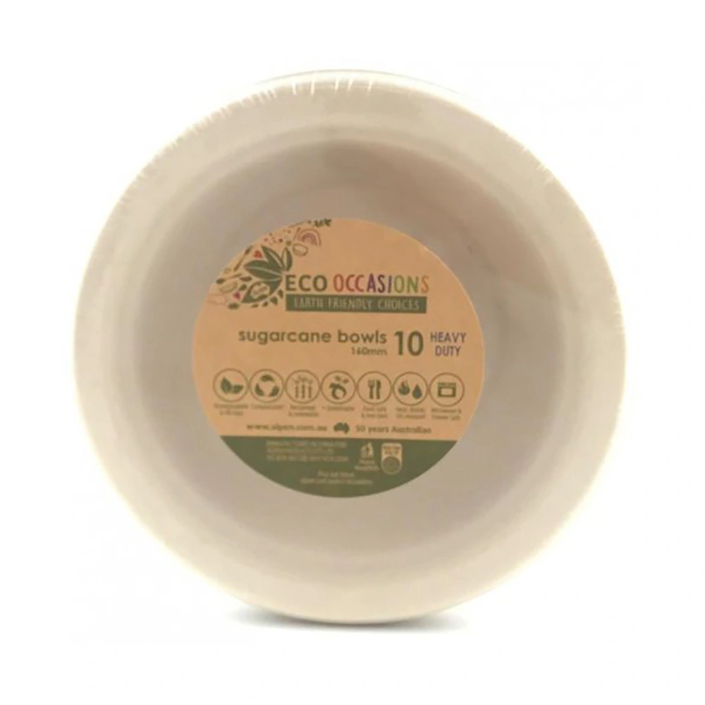 Includes 10 Sugarcane Bowls Natural Measures 160mm High-Quality Coordinate with other party supplies and party tableware Our new EcoOccasions Sugarcane Tableware is made from 100% natural sugarcane fiber. Sugarcane fiber (also known as Bagasse) is the dry pulpy residue left after crushing sugarcane stalks and extracting the juice from cane sugar. Sugarcane pulp is an excellent alternative to wood. While the paper is produced from pulping wood from trees, Bagasse is the reclaimed byproduct of the huge sugarcane industry. Re-production using bagasse is more environmentally friendly than Styrofoam or even recycled paper to produce, requiring less water and less energy. The fibrous nature of bagasse makes it easy to mold into many shapes and sizes. It is compostable, in both home and industrial settings. And will 100% biodegrade within 90 days. When sugarcane products degrade, they provide natural ingredients back to the environment since they are made from natural materials. Being made from reclaimed and renewable resources, our tableware is the ultimate sustainable product. It is food safe and non-toxic, oil & heat resistant up to 100?C, leak proof, microwavable, freezer safe. A great product for Australia Day celebrations!Â