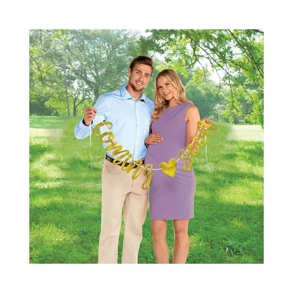 AMSCAN Baby Shower Coming Soon Gold Letter Banner