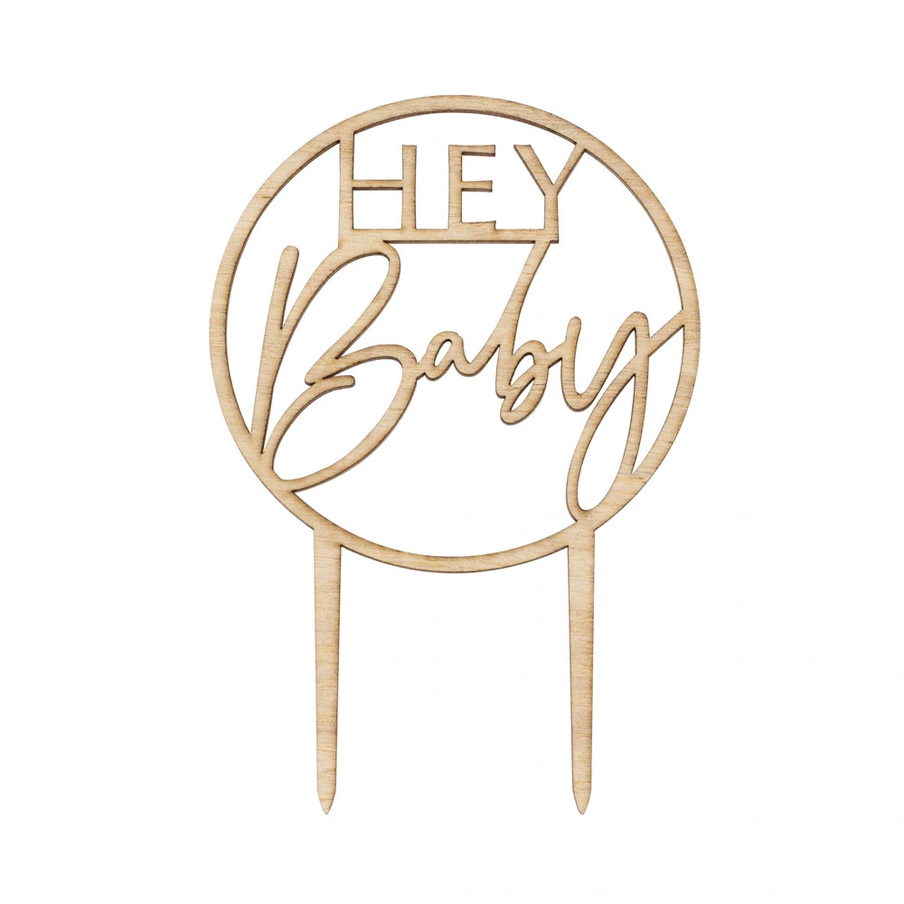 AMSCAN Botanical Baby Wooden Hey Baby Cake Topper