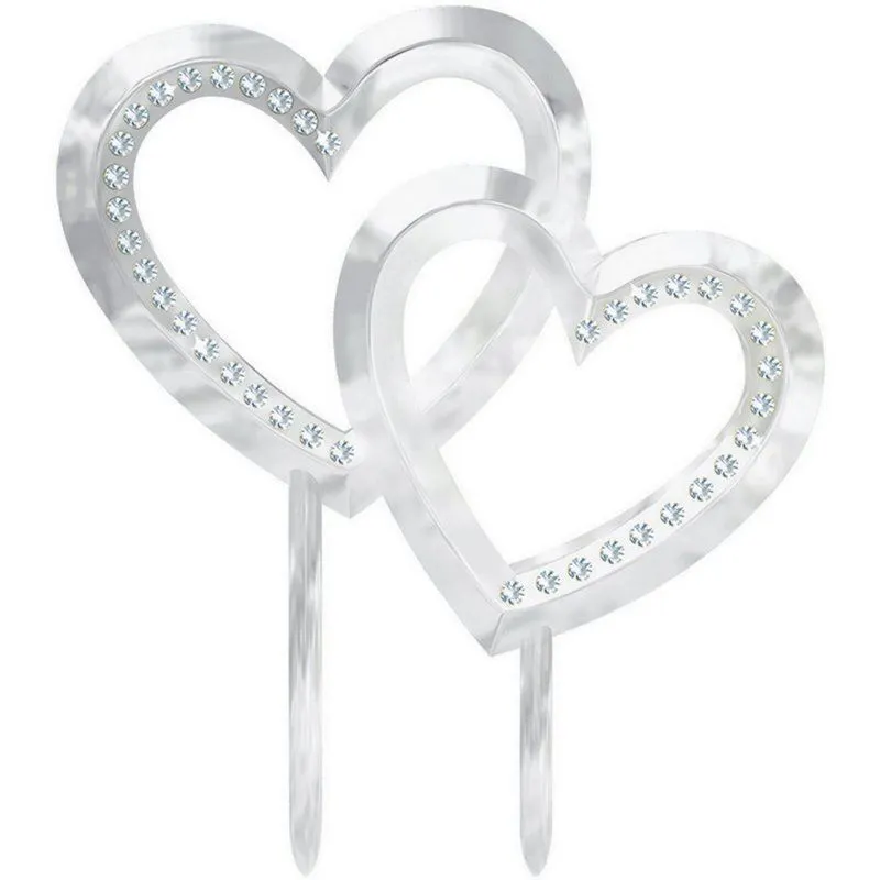 Includes 1 Cake Topper Double Heart Plastic with Gems Measuring 12.7cm x 11.1cm High-Quality Coordinate with other party supplies and party tableware