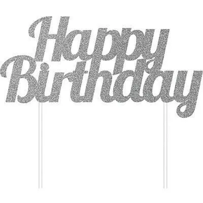 AMSCAN Cake Topper Happy Birthday Silver Glittered