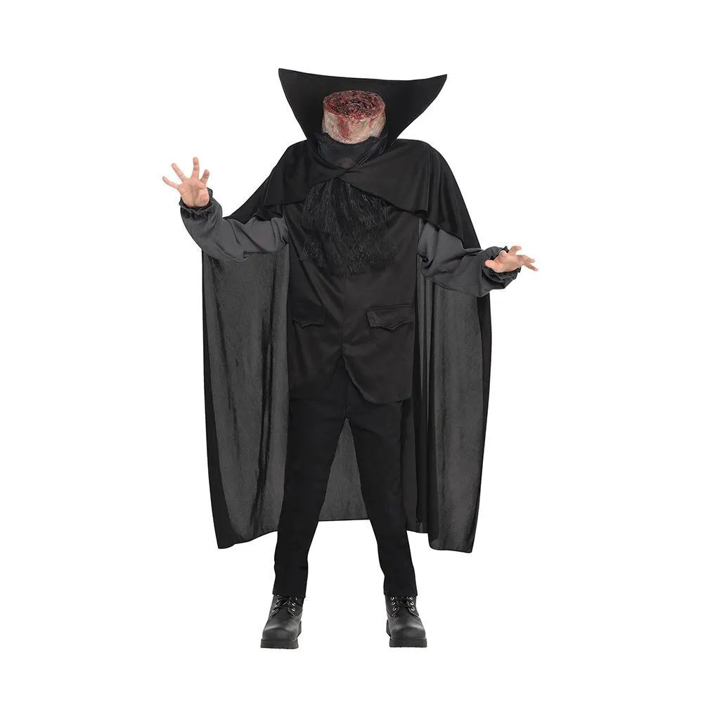 Includes 1 Costume Headless Horseman Boys Contains: Neck Headpiece, Shirt with attached Vest & Cape Childs Size: 8-10 Years High-quality Perfect costume for your theme parties Coordinate with other party accessories