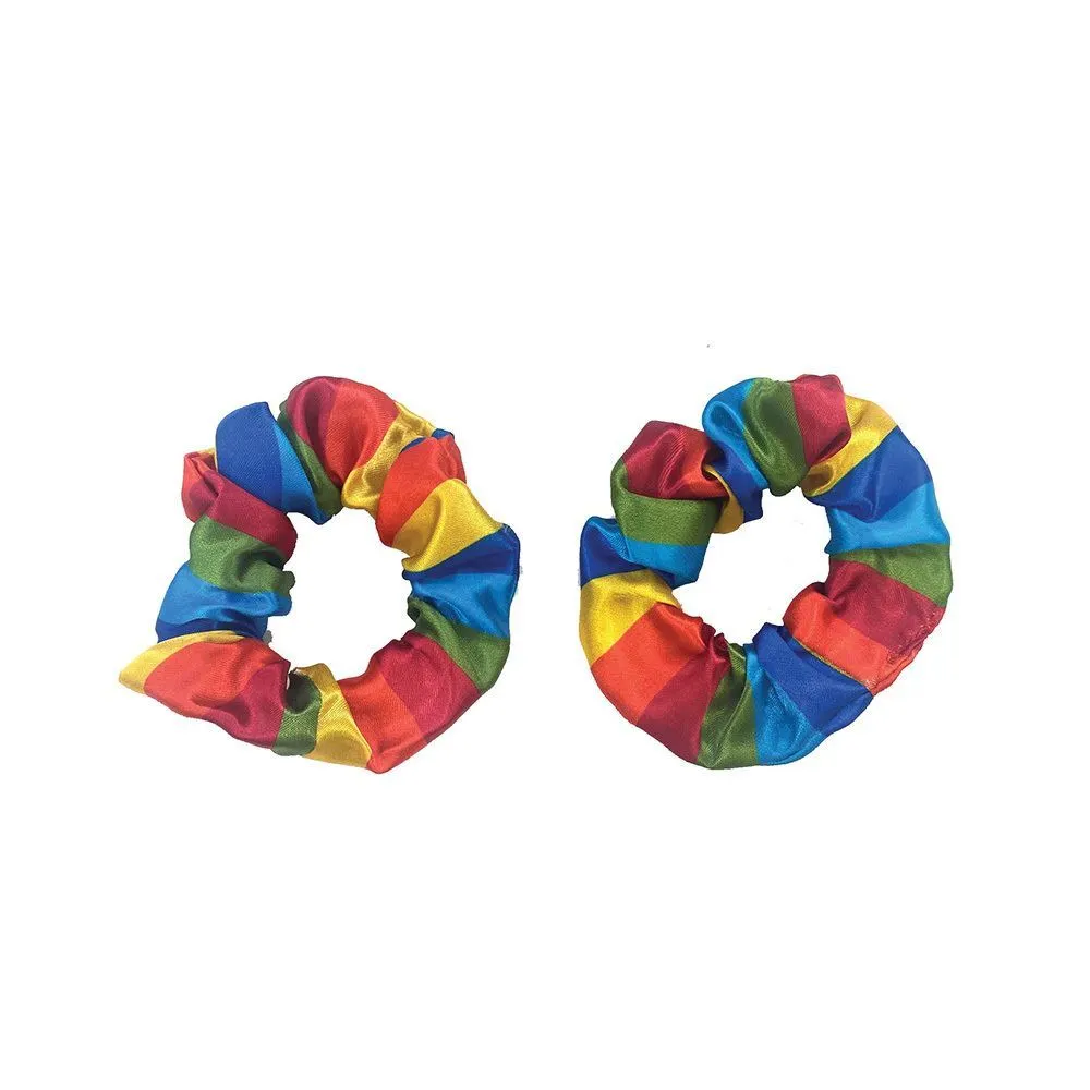 Includes 2 Hair Scrunchies Rainbow Fabric High-quality Perfect accessory for your theme parties Coordinate with other Birthday party supplies and party decorations