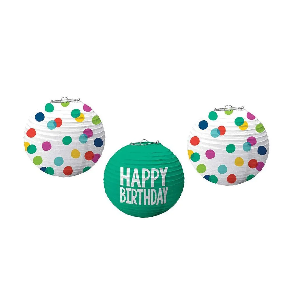 AMSCAN Happy Dots Happy Birthday Paper Lanterns 3 Pack