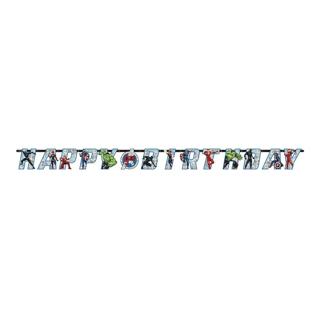Includes 1 Marvel Avengers Powers Unite Jumbo Birthday Banner Kit Contains: 2 banners, 1.75m long x 2m 24 numbers and characters 2 each of 0-9 1 each TH, RD, ND, ST 6 pieces of double-sided tape Perfect for your Avengers theme parties Coordinate with other party supplies and party decorations