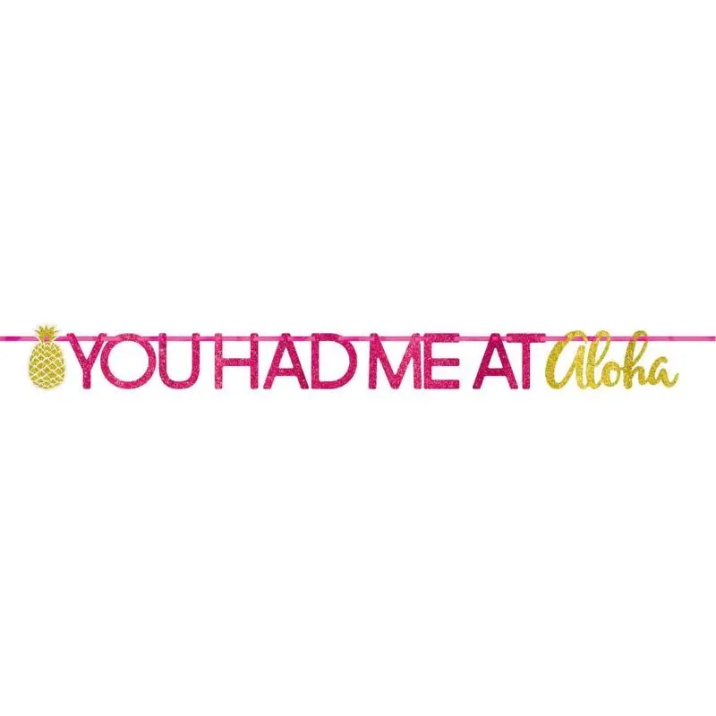 Includes 1 You Had Me At Aloha Glittered Cardboard Letter BannerMeasures 16cm x 3.65mMade of high qualityPerfect for Summer theme partiesCoordinate with other theme party supplies and party decorations