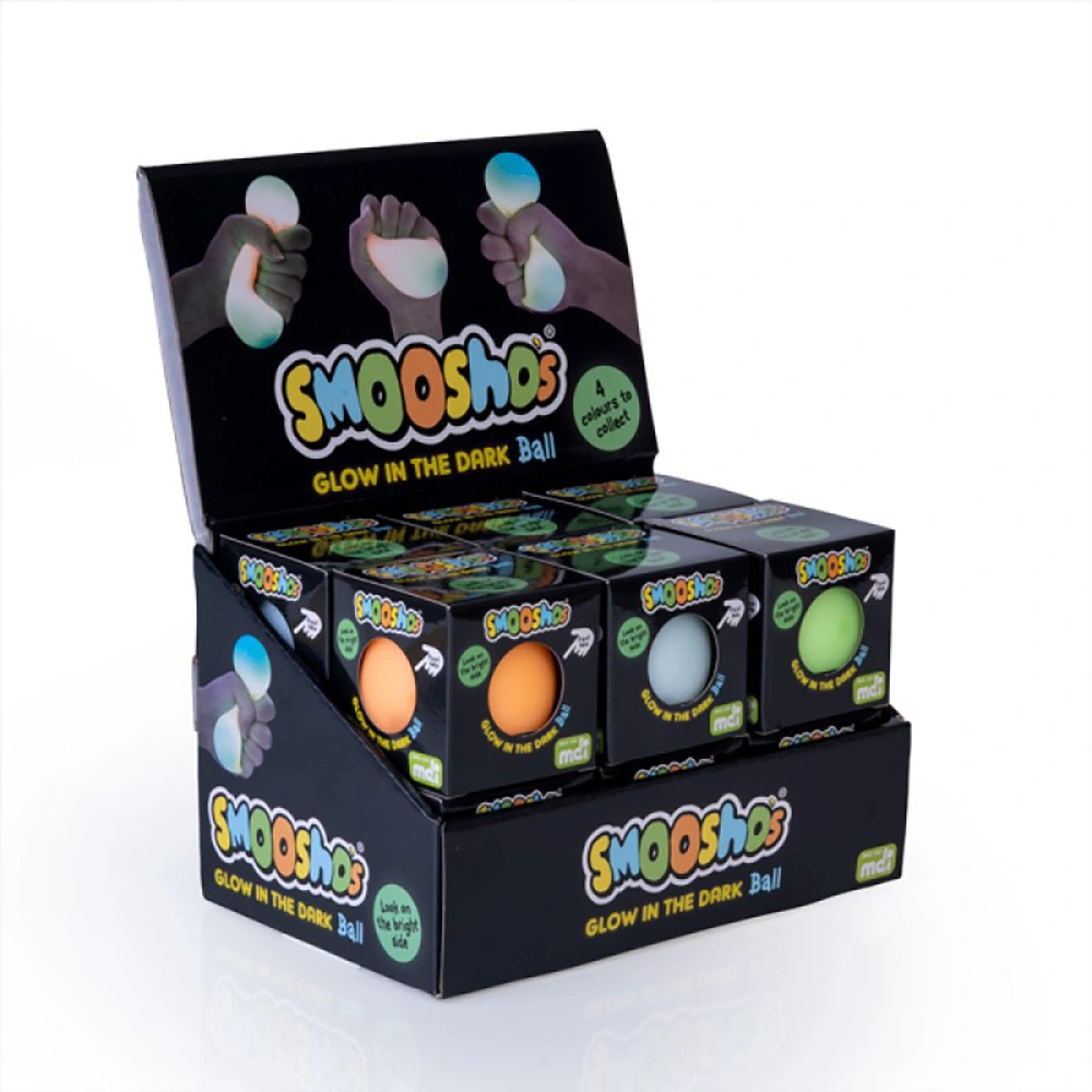 Includes 1 Smooshos Ball Glow In Dark Sensory Toy Measures 5.5cm(L) x 5.5cm(W) x 5.5cm(H) Squishy Smoosho ball that fits perfectly in the palm of your hand Filled with Smoosho’s squishable fluffy foam Comes in 4 glow-in-the-dark colours Colour Sent At Random High-quality