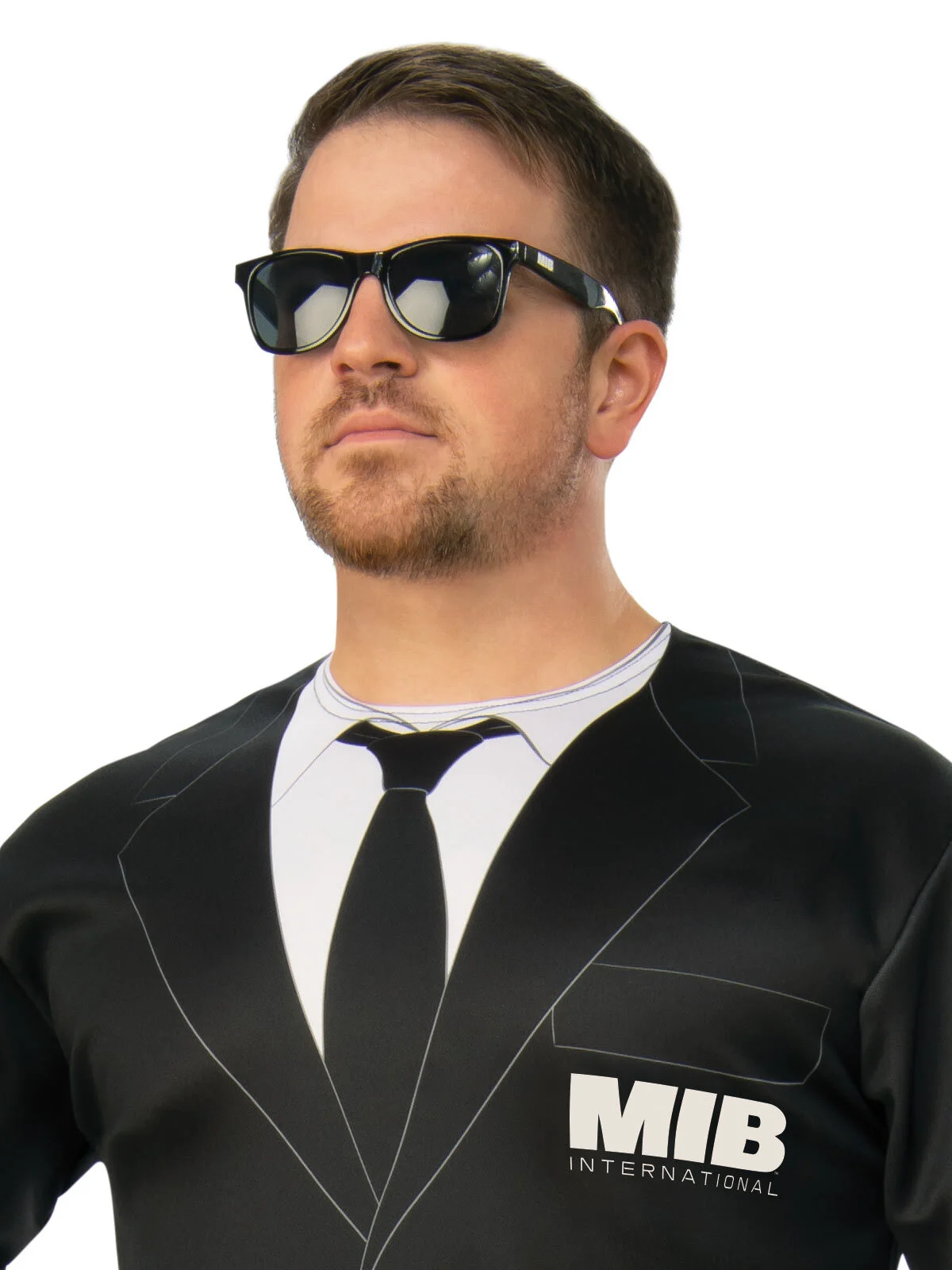 Available Online. For instore availability please call us on 07 3279 1555 The Men (and women) in black are returning in MIB:4 (2019) where they once again employ high-tech weaponry to battle mischievous aliens on earth. Agent H, played by Chris Hemsworth and co-star Agent M played by Tessa Thompson, work together in their super cool fashion to tackle their biggest threat yet – a mole in the Men In Black Organisation. Don the black suit, the dark sunglasses and you too can become a suit-sporting enforcer. INCLUDES Costume top in polyester with digital print on the front including MIB logo as well as tie, lapels, shirt front and buttons The Top has full-length sleeves Black Plastic framed sunglasses with dark lenses Pants and Shoes not included This is an officially licensed Sony Men In Black product