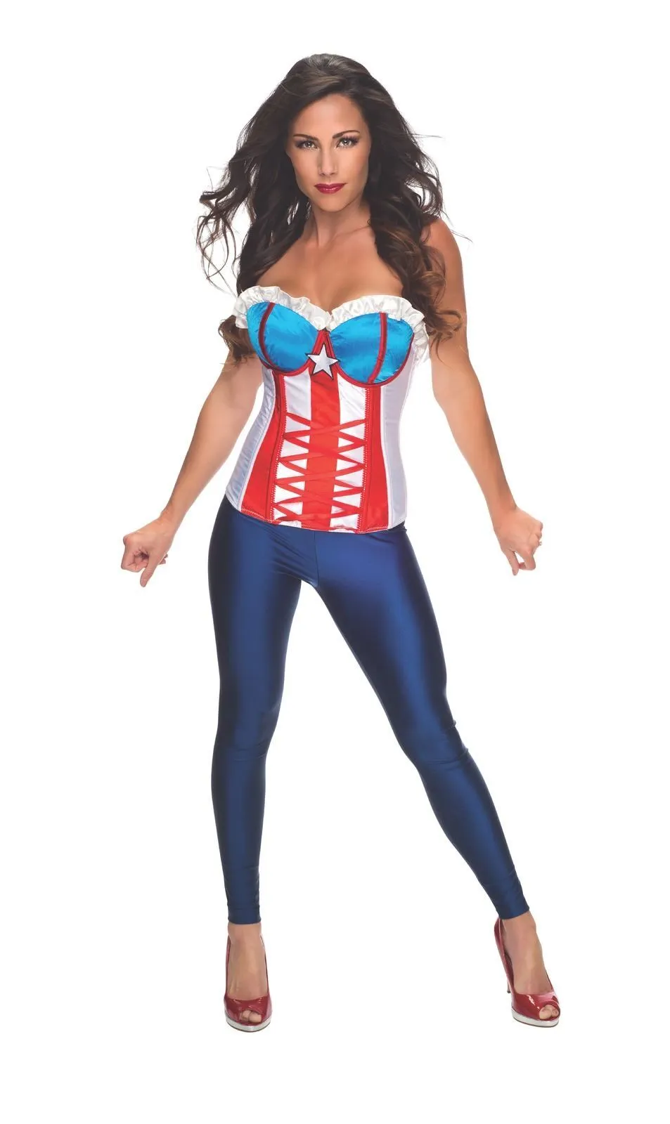 Available Online. For instore availability please call us on 07 3279 1555 American Dream – real Name Shannon Carter, alias American Dream, or the female version of Captain America. She’s the Leader of the Dream team and one of the hottest characters in the Marvel Cinematic Universe. Just like Captain America, she has a trademark American shield to combat the villains in Marvel’s comics. INCLUDES Corset with satin panels, ribbing, braid embellishment and satin crossover ties Ruffle embellishment across sweetheart neckline Embroidered star decal at of middlechest This is an officially licensed Marvel product