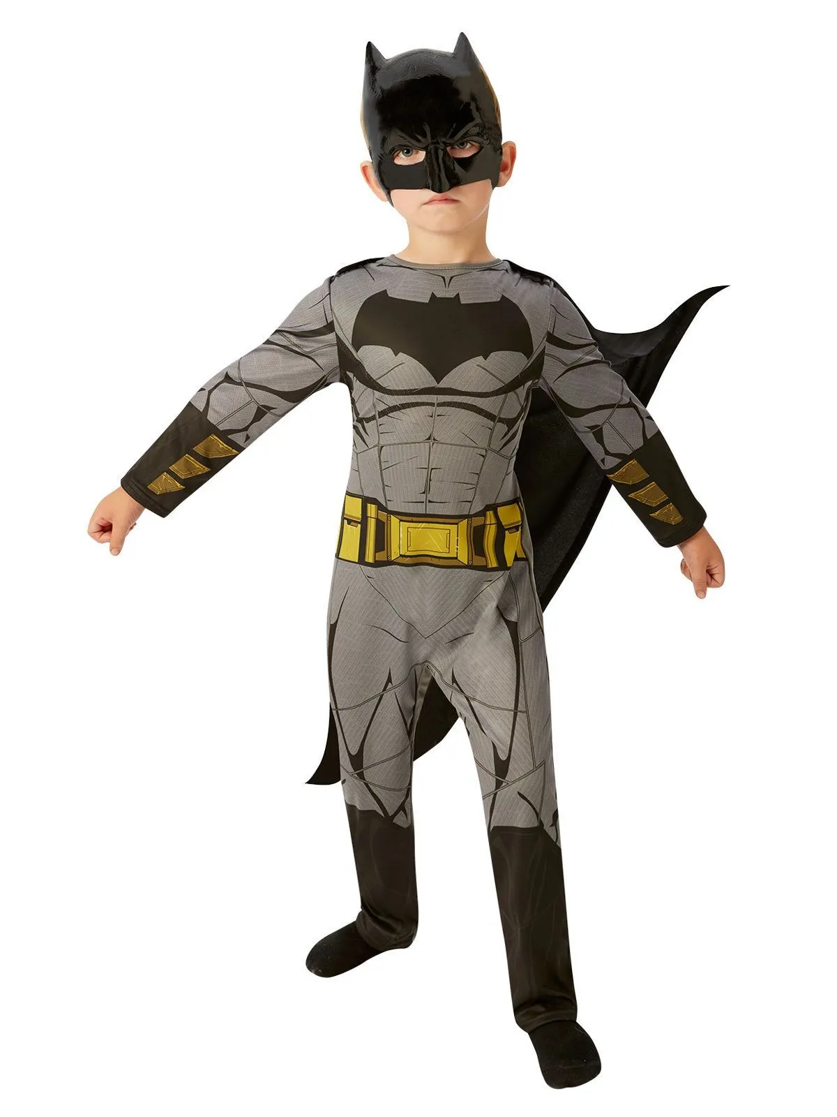 Available Online. For instore availability please call us on 07 3279 1555 He is arguably the most famous character in DC Comics – he is the ultimate Batman. By day he is the eccentric Gotham City tycoon Bruce Wayne, but by night Batman is the fearless Gotham City Crimefighter. This classic superhero uses his batarangs, bat cycle and batmobile to out-smart the likes of The Riddler, The Penguin and The Joker. Played by Actor Ben Affleck he is the star of Warner Bros blockbuster films Batman Vs Superman: Dawn of Justice (2016), Suicide Squad (2016) and Justice League (2017). As much-loved today as ever – become The Batman today! INCLUDES 9-10 Yrs Jumpsuit with digitally printed bodice and full-length sleeves with digital print Pants with digital print Detachable cape with velcro fastens at shoulders Moulded mask with elastic strap and velcro fasten This is an officially licensed DC Comics product