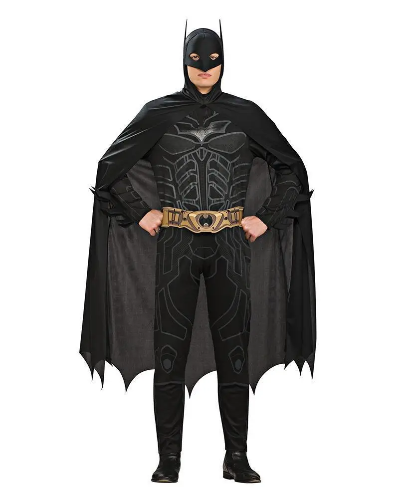 Available Online. For instore availability please call us on 07 3279 1555 He is arguably the most famous character in DC Comics – he is the Dark Knight. By day he was the eccentric Gotham City tycoon Bruce Wayne, but by night Batman, the Dark Knight was the ultimate Gotham City Crimefighter. With side-kick Robin, this classic superhero uses his batarangs, bat cycle and batmobile to out-smart the likes of The Riddler, The Penguin and The Joker. Played by Actor Christian Bale he is the star of Warner Bros famous Trilogy “Batman Begins” (2005) and “The Dark Knight” (2008) and “The Dark Knight Rises” (2012). As much-loved today, as ever – become The Batman today! INCLUDES Jumpsuit with printed features plus full-length sleeves with attached gauntlets with bat fins Pants with print and attached boot tops Shaped belt with printed details and ties at back Cape and cowl with scalloped hem and attached bat ears This is an officially licensed DC Comics product