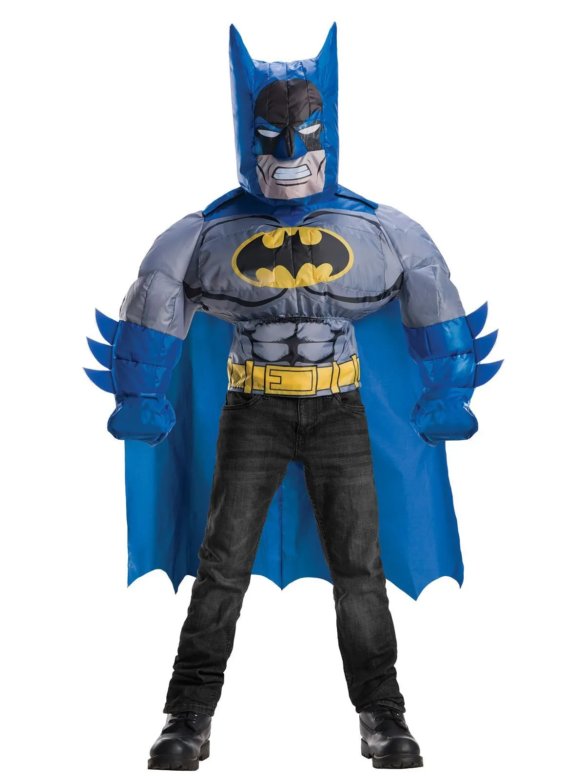 Available Online. For instore availability please call us on 07 3279 1555 Ever wanted to become Batman, but you simply don’t have the physique? Well, look no further than this inflatable costume top, which gives you enormous ‘pumped up’ muscles. Easy to wear with your regular clothes, just inflate using the battery pack and you become Batman, the ultimate crime-fighter of Gotham city, complete with a flowing cape. INCLUDES Child Inflatable costume top with zipper closure at back and battery-operated fan at the waist for inflation Adjustable drawstring tie stops air escaping and gloves attach at the wrists with velcro to make airtight The costume also has a removable cape, which attaches with velcro at the shoulders Requires 2 x AA batteries, not included Pants and shoes not included This is an officially licensed DC Comics product
