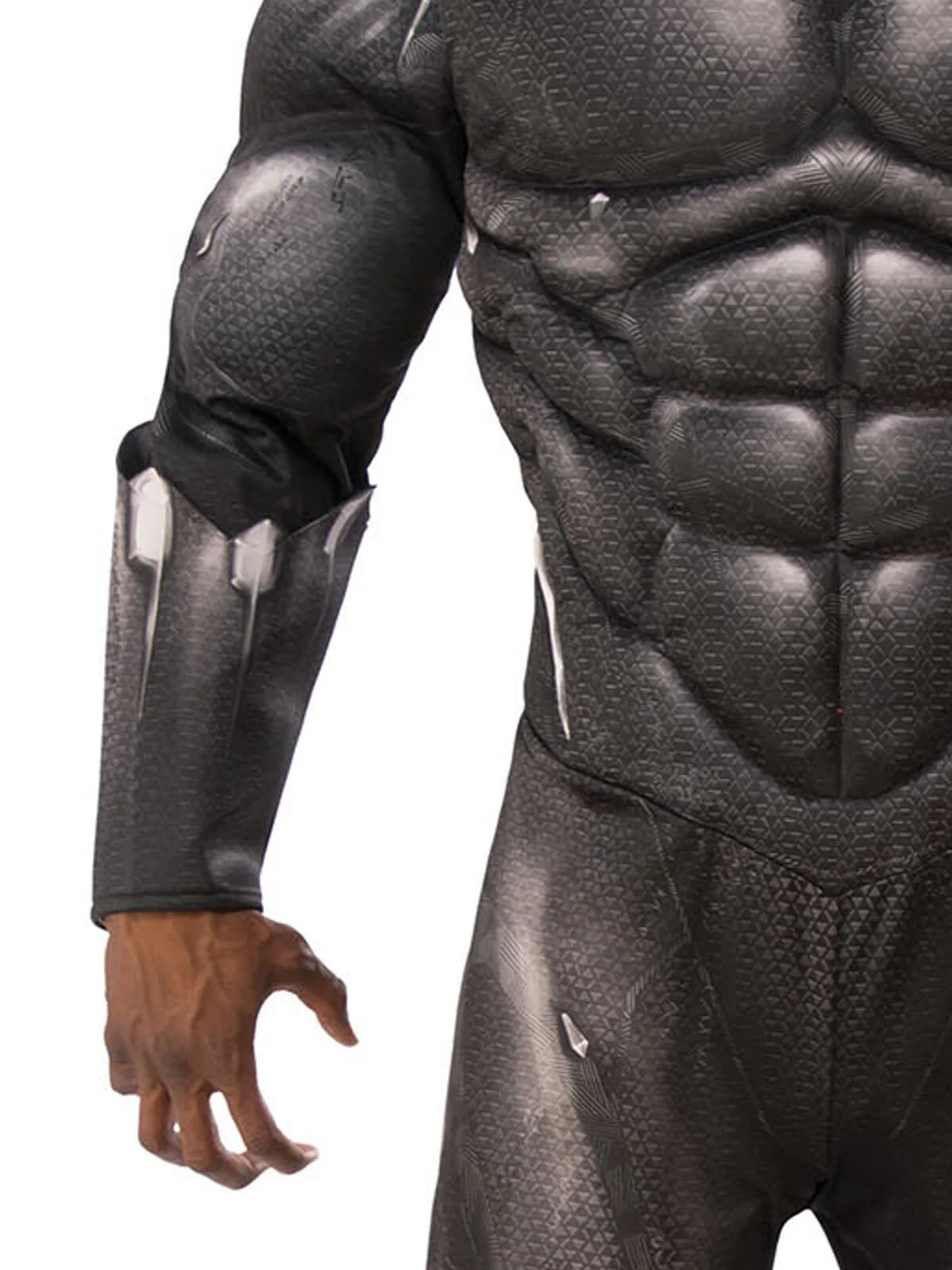 Available Online. For instore availability please call us on 07 3279 1555 His real name is T’Challa, king and protector of the African nation Wakanda. With his cat-like instincts, Black Panther possesses super-human traits and senses. He is smart, cunning, scientific, and strong, and uses these abilities to combat evil. Originating in the Comics, and more recently played by Chadwick Boseman in the movies of the Marvel Cinematic Universe, Black Panther has clawed his way into that black suit, made out of vibranium, in many blockbuster movies. They include Captain America: Civil War (2016), Avenger’s Infinity War (2018) and most recently in Avengers: Endgame (2019). In his self-titled movie of 2018, Black Panther fights the supervillain Eric Killmonger in a true cat fight! INCLUDES Jumpsuit with digitally printed bodice on front and back, fibre filled muscle chest padding and stitching detail Full length sleeves with digital print and fibre filled muscle detail plus attached gauntlets Pants with digital print on front and back, plus attached 3D boot tops Injection moulded mask with painted details This is an officially licensed Marvel product