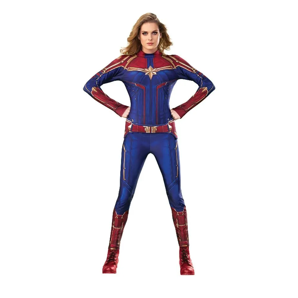 Available Online. For instore availability please call us on 07 3279 1555 The new Queen of the Marvel Cinematic Universe, Ms Captain Marvel is here. Carol Danvers by day, she becomes Heroine Captain Marvel after the Earth is caught in the centre of a galactic conflict between two alien worlds. Played by Brie Larson in the 2019 Disney Blockbuster, her DNA was fused with that of a Kree Alien during an accident, resulting in her receiving superhuman strength, energy projection and flight. Her arch enemy is Yon Rogg – who will win in the combat of these two Aliens? INCLUDES Digitally printed jumpsuit with printed star emblem on chest Jumpsuit features attached boot tops with elastic to secure under shoes Fabric belt with moulded belt buckle, ties at rear This is an officially licensed Marvel product