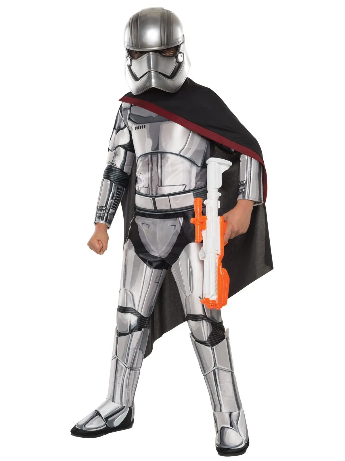 Available Online. For instore availability please call us on 07 3279 1555 You do not want to run into this feisty female on your next inter-galactic excursion! Meet Captain Phasma, Commander of the First Order and leader of the Stormtroopers. Wearing her trademark silver armour, this villain in the Disney/Lucas Films’ Star Wars series can be seen in the films “The Force Awakens” (2015) and “The Last Jedi” (2017). Watch her as she uses her evil against the Resistance. INCLUDES Padded jumpsuit with digital print and stitching detailplus full length sleeves with print and padded details. Pants with padding and digital print plus attached 3D foam backed boot tops Cape with red stripe detail and velcro fasten at shoulder Foam belt with printed detail and velcro fasten at back 2 piece mask with metallic paint, mesh eye coverings and velcro fastens. Weapon not included This is an officially licensed Star Wars product