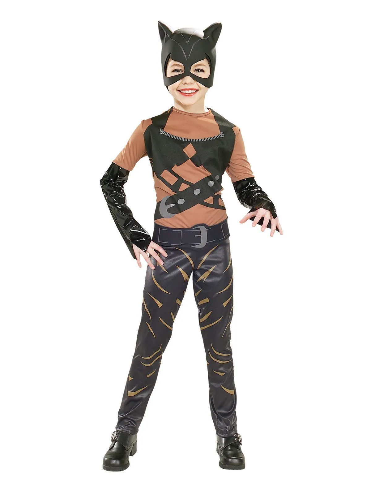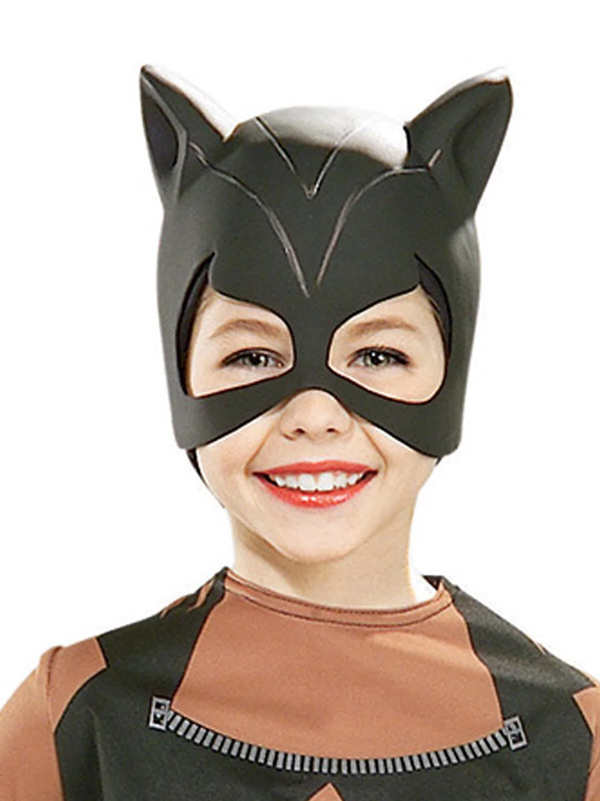 Available Online. For instore availability please call us on 07 3279 1555 Her character started as “The Cat” in the 1940 “Batman” movie. A sleek, slinky, sexy DC Comics character, Catwoman is the complicated love interest of Batman and a villainous cat burglar, prowling around Gotham City. In later years she has become an anti-heroine, often doing wrong things for the right reasons. Selina Kyle is known for her figure-hugging black catsuit, pointy ears and her bullwhip weapon. Played by many famous actors over the decades, including Michelle Pfeiffer and Anne Hathaway, Catwoman has starred in many films by Warner Bros such as The Dark Knight (2012) and Batman Returns (1992). So, practice your meow and your purr, and become this feisty feline.INCLUDESJumpsuit with printed details on the bodicefull length sleeves with a wet look panel to the cuff with a jagged hemPants with digital printMoulded mask with shaped eye cut outs, 3D ears and painted featuresThis is an officially licensed DC Comics product