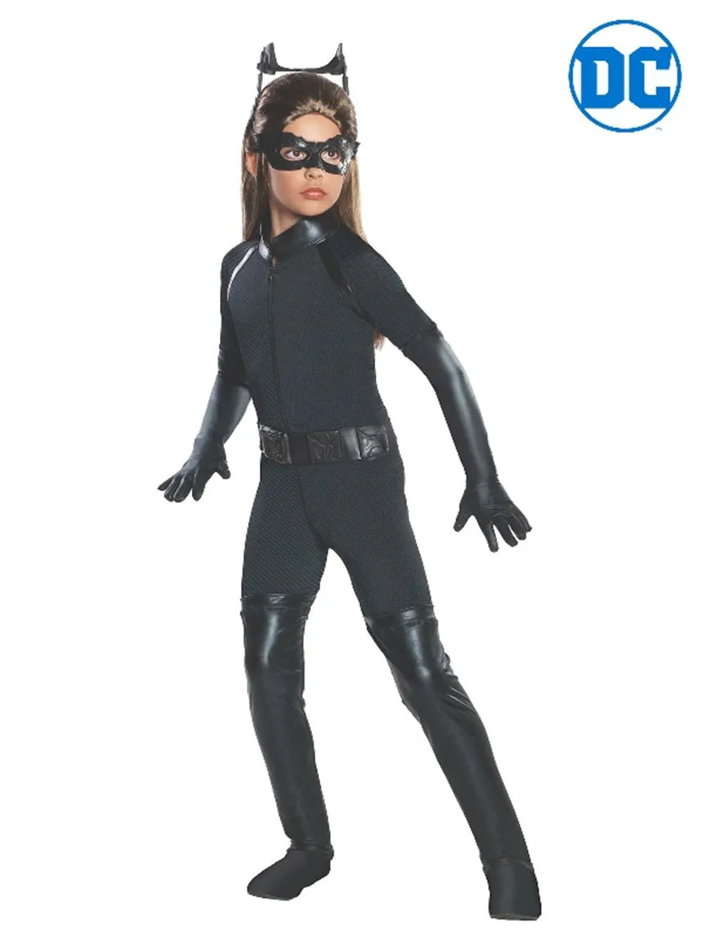 Available Online. For instore availability please call us on 07 3279 1555 Her character started as “The Cat” in the 1940 “Batman” movie. A sleek, slinky, sexy DC Comics character, Catwoman is the complicated love interest of Batman and a villainous cat burglar, prowling around Gotham City. In later years she has become an anti-heroine, often doing wrong things for the right reasons. Selina Kyle is known for her figure-hugging black catsuit, pointy ears and her bullwhip weapon. Played by many famous actors over the decades, including Michelle Pfeiffer and Anne Hathaway, Catwoman has starred in many films by Warner Bros such as The Dark Knight (2012) and Batman Returns (1992). So, practice your meow and your purr, and become this feisty feline. INCLUDES Jumpsuit with stand away collar and full length sleeves with faux leather gloves attached Pants with faux leather above the knee boot tops attached Faux leather belt with inset details and velcro fasten Moulded eye mask with elastic strap and velcro fasten plus ears headpiece This is an officially licensed DC Comics product