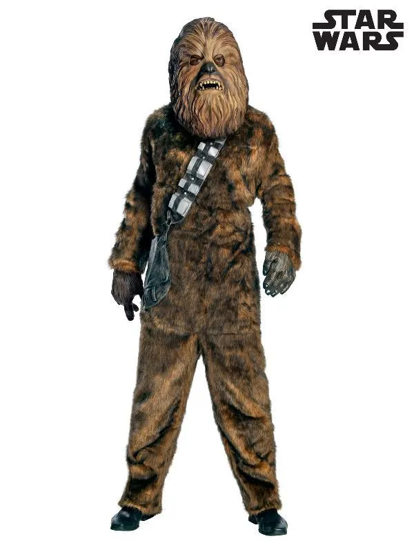 Available Online. For instore availability please call us on 07 3279 1555 He is everyone’s favourite hairy Wookie. The walking carpet of the outer galaxy, Chewbacca, often called “Chewie” is co-pilot to Han Solo on his spaceship The Millennium Falcon. Together Chewie and his friends in The Resistance fight against the Dark side in Disney/Lucas Films’ infamous Star Wars series. See him in A New Hope (1977), The Empire Strikes Back (1980), Return of the Jedi (1983), Revenge of the Sith (2005), The Clone Wars (2008), The Force Awakens (2015), Rogue One (2016) and The Last Jedi (2017). INCLUDES Faux fur jumpsuit with full length sleeves Moulded latex mask with painted features Moulded latex gloves with painted features Bandolier with attached pouch and painted features This is an officially licensed Star Wars product