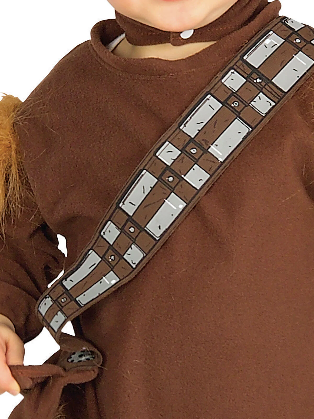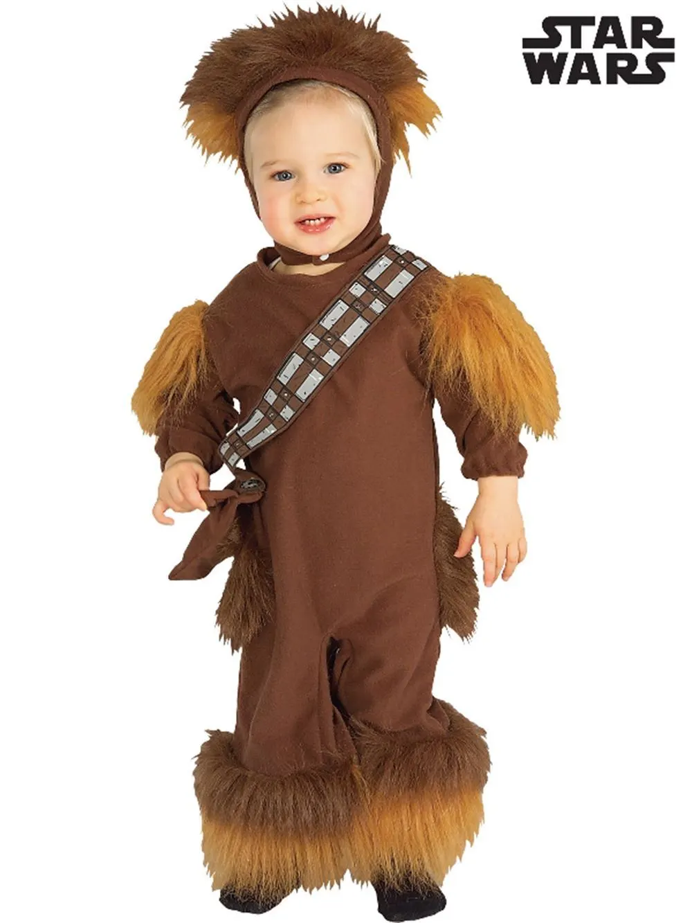 Available Online. For instore availability please call us on 07 3279 1555 He is everyone’s favourite hairy Wookie. The walking carpet of the outer galaxy, Chewbacca, often called “Chewie” is co-pilot to Han Solo on his spaceship The Millennium Falcon. Together Chewie and his friends in The Resistance fight against the Dark side in Disney/Lucas Films’ infamous Star Wars series. See him in A New Hope (1977), The Empire Strikes Back (1980), Return of the Jedi (1983), Revenge of the Sith (2005), The Clone Wars (2008), The Force Awakens (2015), Rogue One (2016) and The Last Jedi (2017). INCLUDES Romper in polar fleece with faux fur features on the shoulders, hips an legs Bandolier with printed details and attached pouch Headpiece in polar fleece with faux fur attached to top and button up under chin This is an officially licensed Star Wars product