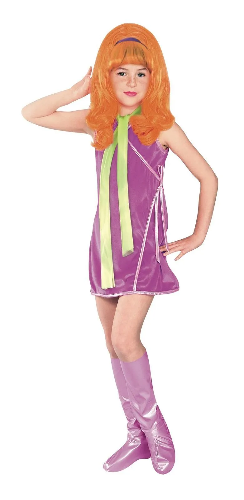 Available Online. For instore availability please call us on 07 3279 1555 Join Shaggy, Velma and Scooby – the mystery-solving team from the famous Scooby Doo series, and do it in style wearing this psychedelic purple dressINCLUDESPurple velvet pullover mini dress with purple satin hem and cross design feature including side tiesSatin scarfRed beehive styled wig made from polypropolene hair strands and attached headbandBoot tops in satin fabric to cover your shoesThis is an officially licensed Scooby-Doo product