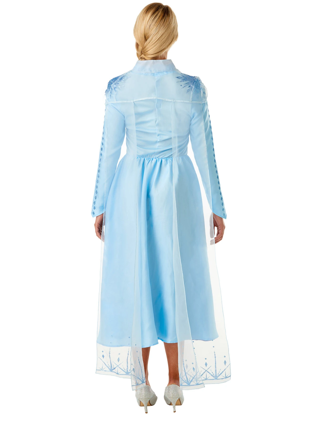 Available Online. For instore availability please call us on 07 3279 1555 “Let It Go!” She is Elsa from the blockbuster Disney movies Frozen (2013), short films Frozen Fever (2015) and Olaf’s Frozen Adventures (2017) and now the NEW movie, Frozen 2 (2019). Featuring actor and singer Idina Menzel, become the magical Queen Elsa as you journey to Arendelle with your sister Anna. With friends Olaf, Kristoff and Sven, together you find the strength and power to reverse the curse that has plunged you and your kingdom into an eternal winter. Take on the guise of Elsa – strong, protective and powerful, and see what adventures await you in Frozen 2.INCLUDESSatinique dress to mid-calf height in shades of blue with mauve highlights and printed mock belt at elasticised waistline, plus glitter diamond trim down the full length sleeves. Sleeves have pointed cuffsDress features elaborate neckline with a silvery sequin panel in the centre plus glitter snowflakes printed on the collarDigitally printed satin skirt displays a textured pattern in mauve and blue shades plus glittery printed embellishmentsDetachable digitally printed sheer cape features high collar plus a glittery snowflake design at top and hemline. Cape attaches with velcro tabs at the dress collar and drapes down to ankle height in two flowing sectionsShoes not includedThis is an officially licensed Disney product