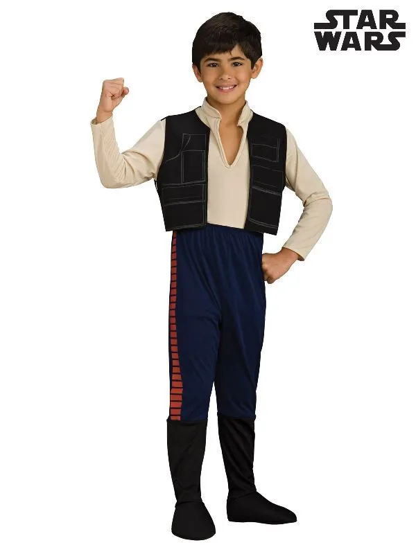 Available Online. For instore availability please call us on 07 3279 1555 He is a smuggler, a scoundrel and a rogue, but also a hero of the greater galaxy. Han Solo and his Wookie partner Chewbacca share many adventures aboard the Millennium spaceship, of which he is Captain. A star of the Lucas Film and Disney empire, Star Wars, Solo, played by Harrison Ford is Princess Leia’s love interest and best ‘bad guy’ on the planet(s). He appears in episodes, A New Hope (1977), The Empire Strikes Back (1980), Return of the Jedi (1983), The Force Awakens (2015) and Solo: A Star Wars Story (2018). INCLUDES Jumpsuit with mock shirt with V neck and upright collar plus full length sleeves Mock vest attached with printed details on front Attached pants with printed stripe detail down side Attached boot tops This is an officially licensed Star Wars product