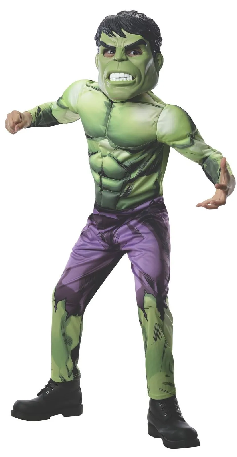 Available Online. For instore availability please call us on 07 3279 1555 Hulk Smash! He’s the green machine, muscle-bound and simply Incredible! After a lab accident involving gamma radiation, alter-ego Bruce banner finds himself turning into a huge green-skinned monster whenever he gets angry. Enter Hulk – one of the most popular Marvel Avengers. Originating from Marvel Comics, the Hulk has smashed his way into the Marvel Cinematic Universe with super strength. Played by Actors Mark Ruffalo, Eric Bana and Edward Norton, Hulk has appeared in many Marvel movies by Disney, including Hulk (2003), The Incredible Hulk (2008), The Avengers (2012), Iron man 3 (2013), Avengers: Age of Ultron (2015), Thor Ragnarok (2017) and Avengers: Infinity War (2018). INCLUDES Jumpsuit with digitally printed bodice and fibre filled muscle chest with stitching detail Full-length sleeves with digital print, fibre-filled muscles and stitching details Pants with digital print front and back Mask with moulded details and painted features This is an officially licensed Marvel product