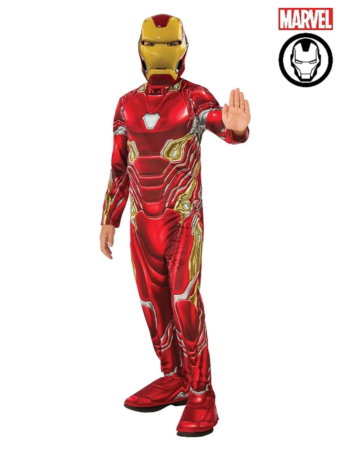 Available Online. For instore availability please call us on 07 3279 1555 One of the ultimate superheroes from the Marvel Comics and Disney’s Marvel Cinematic Universe, Iron-Man, alias Tony Stark (played by actor Robert Downey Jr) is the leader of the Avengers. As seen in movies Iron-Man (2008), Iron-Man 2 (2010), The Avengers (2012), Iron-Man 3 (2013), Avengers: Age of Ultron (2015), Captain America: Civil War (2016), Spider-Man: Homecoming (2017), Avengers: Infinity War (2018) and in his grand finale, in Avengers: Endgame (2019), he is known for his arc reactor and metallic armour suit in crimson and gold. His suit gives him superpowers and was designed by the intelligent Engineer, Tony Stark. INCLUDES Jumpsuit with digitally printed bodice and stitching detail Full-length sleeves with digital print and stitching detail Pants with digital print on front and back plus attached shoe covers Moulded mask with painted features and elastic band with velcro fasten This is an officially licensed Marvel product