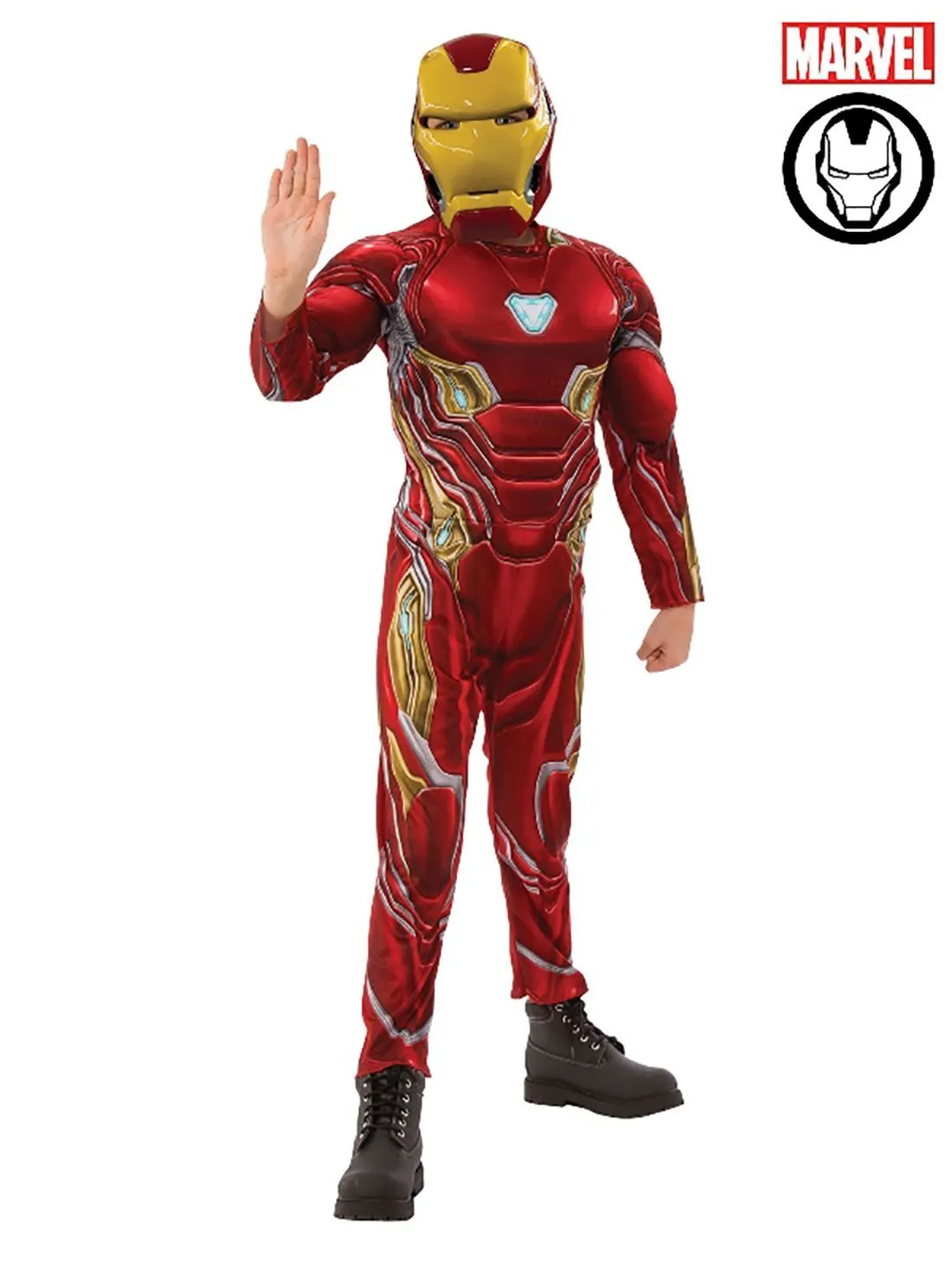 Available Online. For instore availability please call us on 07 3279 1555 One of the ultimate superheroes from the Marvel Comics and Disney’s Marvel Cinematic Universe, Iron-Man, alias Tony Stark (played by actor Robert Downey Jr) is the leader of the Avengers. As seen in movies Iron-Man (2008), Iron-Man 2 (2010), The Avengers (2012), Iron-Man 3 (2013), Avengers: Age of Ultron (2015), Captain America: Civil War (2016), Spider-Man: Homecoming (2017) and Avengers: Infinity War (2018), he is known for his arc reactor and metallic armour suit in crimson and gold. His suit gives him super powers and was designed by the intelligent Engineer, Tony Stark. INCLUDES Jumpsuit with digitally printed bodice, fibre filled amour and stitching detail Full-length sleeves with digital print, fibre-filled armour and stitching detail Pants with digital print on front Moulded mask with painted features and elastic band with velcro fasten This is an officially licensed Marvel product