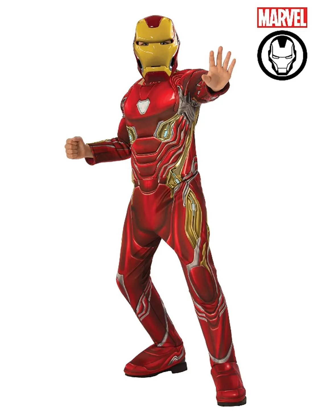 Available Online. For instore availability please call us on 07 3279 1555 One of the ultimate superheroes from the Marvel Comics and Disney’s Marvel Cinematic Universe, Iron-Man, alias Tony Stark (played by actor Robert Downey Jr) is the leader of the Avengers. As seen in movies Iron-Man (2008), Iron-Man 2 (2010), The Avengers (2012), Iron-Man 3 (2013), Avengers: Age of Ultron (2015), Captain America: Civil War (2016), Spider-Man: Homecoming (2017) and Avengers: Infinity War (2018), he is known for his arc reactor and metallic armour suit in crimson and gold. His suit gives him superpowers and was designed by the intelligent Engineer, Tony Stark. INCLUDES Jumpsuit with digitally printed bodice, fibre-filled amour and stitching detail Full-length sleeves with digital print, fibre-filled armour and stitching detail Pants with digital print on front and back plus attached boot tops Moulded mask with painted features and elastic band with velcro fasten This is an officially licensed Marvel product