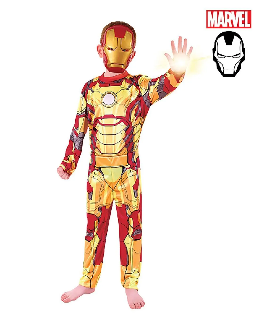 Available Online. For instore availability please call us on 07 3279 1555 One of the ultimate superheroes from the Marvel Comics and Disney’s Marvel Cinematic Universe, Iron-Man, alias Tony Stark (played by actor Robert Downey Jr) is the leader of the Avengers. As seen in movies Iron-Man (2018), Iron-Man 2 (2010), The Avengers (2012), Iron-Man 3 (2013), Avengers: Age of Ultron (2015), Captain America: Civil War (2016), Spider-Man: Homecoming (2017) and Avengers: Infinity War (2018), he is known for his arc reactor and metallic armour suit in crimson and gold. His suit gives him superpowers and was designed by the intelligent Engineer, Tony Stark. INCLUDES Jumpsuit with digitally printed bodice Full-length sleeves with digital print Pants with digital print Moulded mask with painted features and elastic band with velcro fasten This is an officially licensed Marvel product