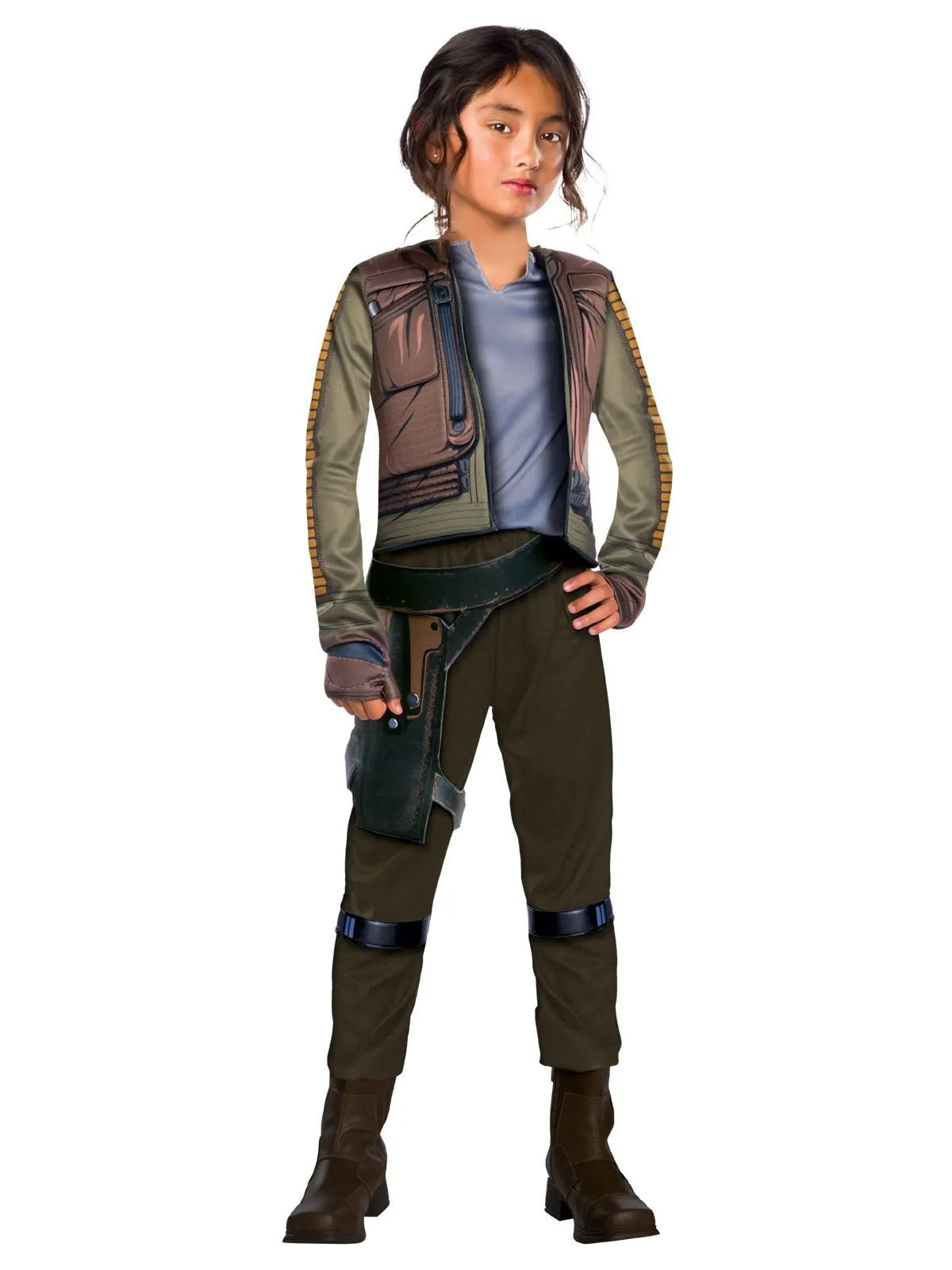 Available Online. For instore availability please call us on 07 3279 1555 She is a female human, soldier and member of the Alliance. A former criminal, Jyn Erso steals the plans of the Death star in Star Wars: Rogue One. Played by actor Felicity Jones, why not don the jacket and the attitude of Jyn today!INCLUDESJacket with digital print and foam padding plus attached shirt frontFull length sleeves with digital print and thumb holesPants with strap detailBelt with attached holster, digital print and fastens at waist and leg with velcro. Boots not includedThis is an officially licensed Star Wars product