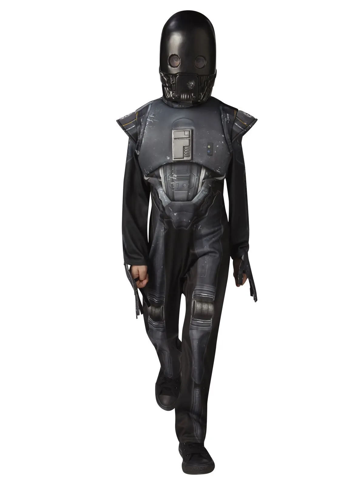 Available Online. For instore availability please call us on 07 3279 1555 It appeared first in Lucas Film/Disney’s Star Wars: Rogue One. A robot and Imperial Security droid – K-2S0, unlike earlier droids C-3PO, R2-D2 and BB-8 is downright hilarious, with a uniquely dry and disturbingly honest wit. Become K-2SO today. INCLUDES Jumpsuit with 3D foam chest panel and shoulder armour plus digital print and stitching details Full length sleeves with printed details and attached hand covers with elastic straps Pants with digital print Moulded mask with painted features, eye covers and elastic strap This is an officially licensed Star Wars product