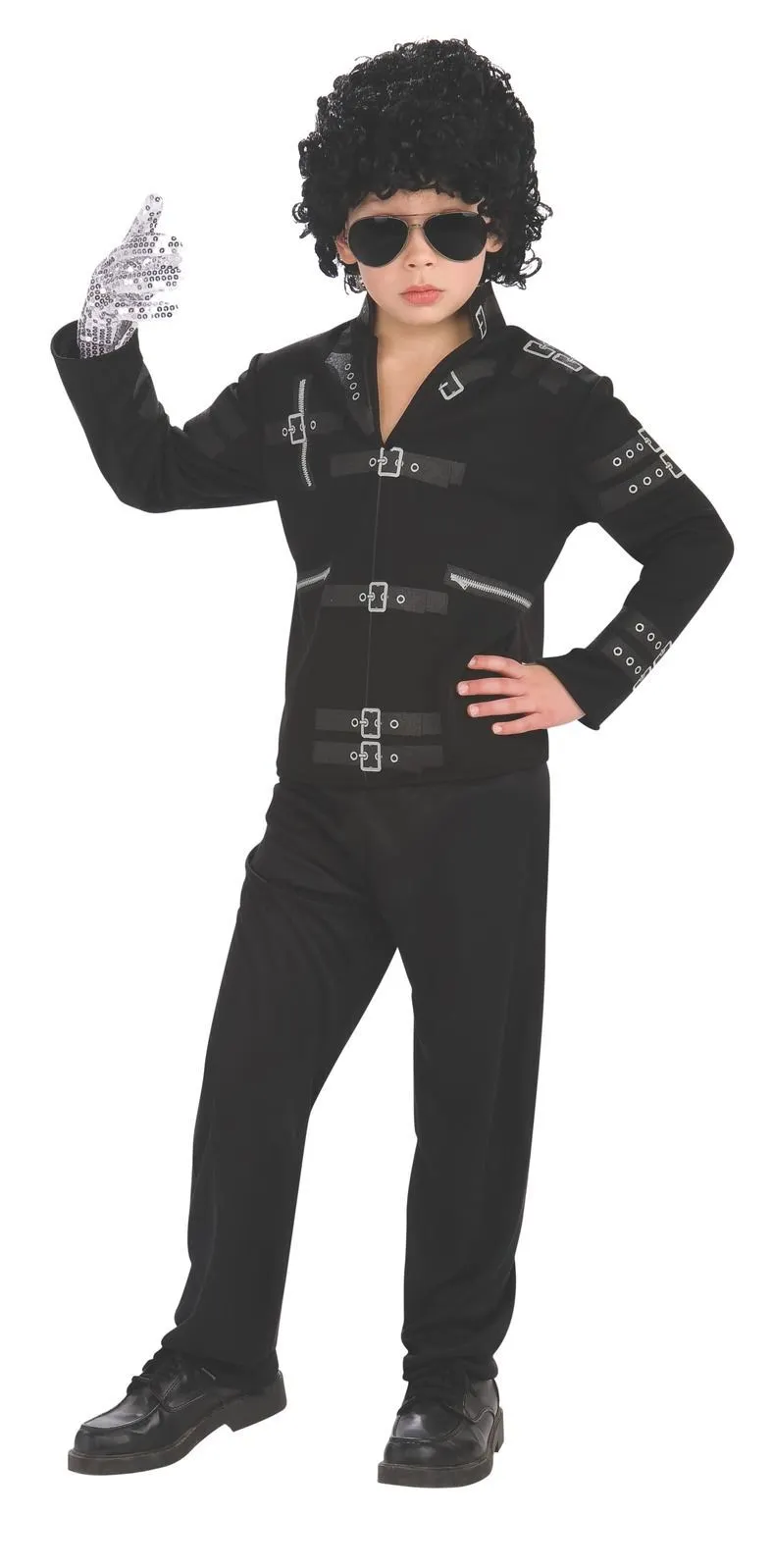 Available Online. For instore availability please call us on 07 3279 1555 A Pop icon of the 20th century, Michael Jackson has long been hailed The King of Pop. Born in 1958, Jackson was part of the famous Jackson Five siblings and went on to sell over 350 million records worldwide. Song-writer, singer, dancer, theatrics, he could do it all. Known for his moonwalk and wearing one white glove, Jackson had hundreds of hit songs including ‘Beat It’, ‘Billie Jean’ and ‘Thriller’. He is also a two-time member of the rock and roll hall of fame. So better start working on your moves, as you transform into the legendary Michael Jackson himself! INCLUDES Deluxe black trademark BAD jacket with front zipper closure and trademark belt buckle embellishments The jacket has studs, zips and vinyl-look patches on the torso, sleeves and shoulders High collar Wig and glove sold separately. Pants, sunglasses and shoes not included This is an officially licensed Michael Jackson product