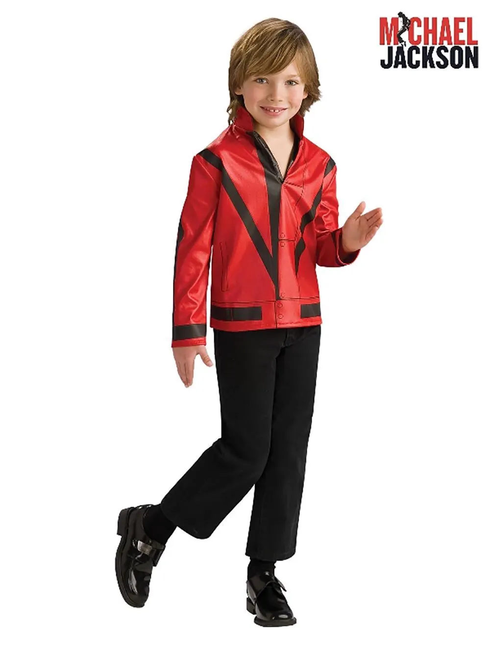 Available Online. For instore availability please call us on 07 3279 1555 A Pop icon of the 20th century, Michael Jackson has long been hailed The King of Pop. Born in 1958, Jackson was part of the famous Jackson Five siblings and went on to sell over 350 million records worldwide. Song-writer, singer, dancer, theatrics, he could do it all. Known for his moonwalk and wearing one white glove, Jackson had hundreds of hit songs including ‘Beat It’, ‘Billie Jean’ and ‘Thriller’. He is also a two-time member of the rock and roll hall of fame. So better start working on your moves, as you transform into the legendary Michael Jackson himself! INCLUDES Vinyl-look, matt red t-shirt, designed to look like the Michael Jackson Thriller jacket Top has printed black stripes on torso and sleeves High collar Glove sold separately. Pants, shoes and socks not included This is an officially licensed Michael Jackson product