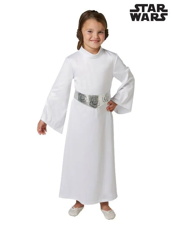 Available Online. For instore availability please call us on 07 3279 1555 Become the Rebel Alliance’s Greatest Leader. Fearless and strong, she, along with friends like Han Solo and brother Luke Skywalker bring down the Death Star in the famous Lucas Film and Disney Star Wars series. Played by the iconic Carrie Fisher, Princess Leia Organa appears in Star Wars: A New Hope (1977), The Empire Strikes Back (1980), Return of the Jedi (1983), Revenge of the Sith (2005), The Clone Wars (2008), Star Wars: Rebels (2014), The Force Awakens (2015), Rogue One (2016) and The last Jedi (2017). She is known for her trademark long white dress and immaculate plaited hair buns. This woman is a heroine of all the Galaxies as she fights like a Jedi with her lightsaber. Dressed as Princess Leia, you know the force will always be with you. INCLUDES Long dress in polyester with stand away collar and full length trumpet sleeves Foam backed belt in metallic fabric with printed details and fasten at back Headband in polyester with bun features at sides This is an officially licensed Star Wars product
