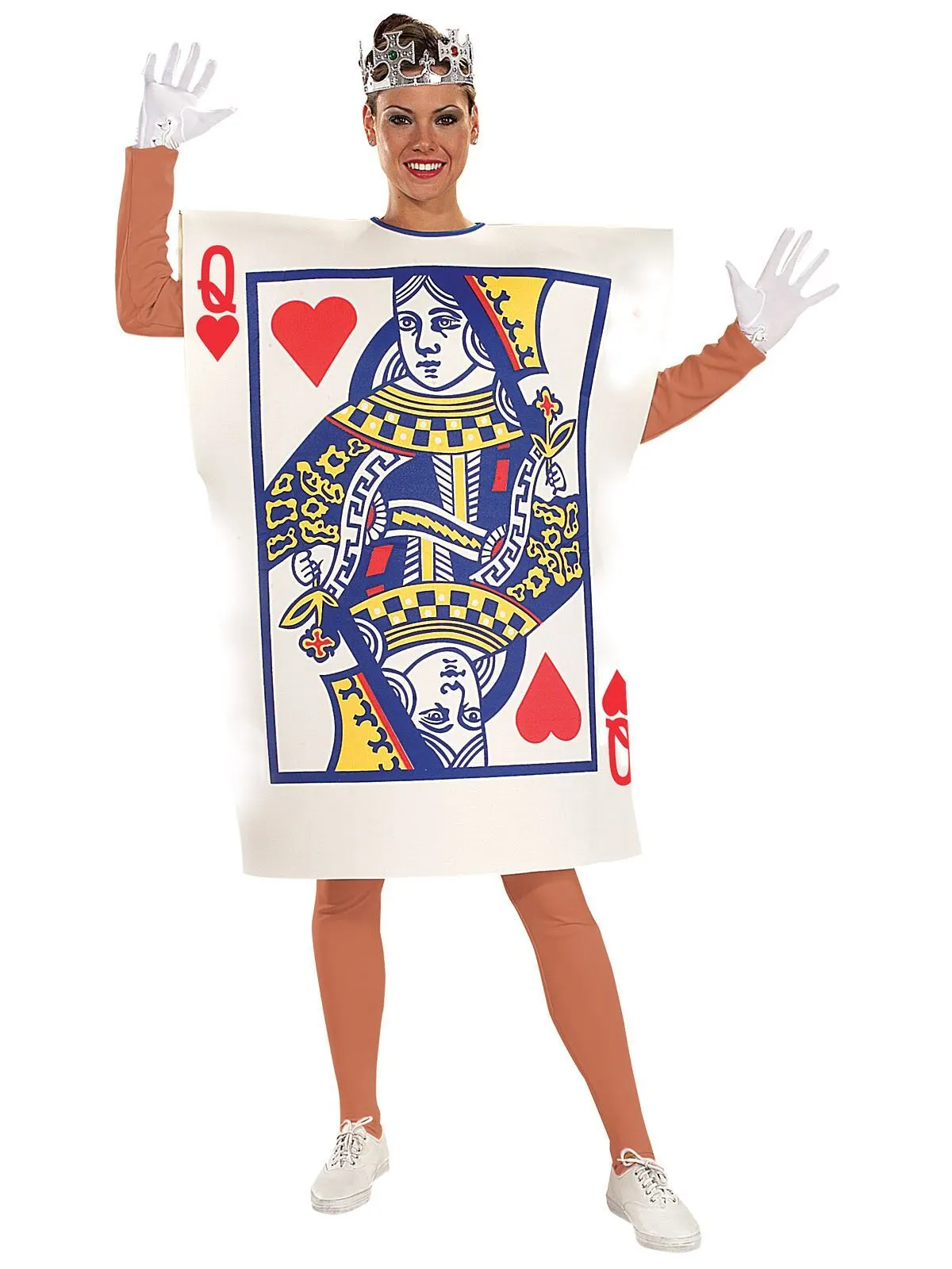 Available Online. For instore availability please call us on 07 3279 1555 When you’re playing a game of cards and you’re a dealt a Queen of Hearts Card, you know things are looking up for you. Now you can become the lucky card, just like in the timeless storybook, Alice in Wonderland, in this fun playing card costume. INCLUDES Rectangular tunic with ties at back Digitally printed image on front Plastic moulded crown with plastic jewel embellishments Gloves, Skivvy and Tights not included