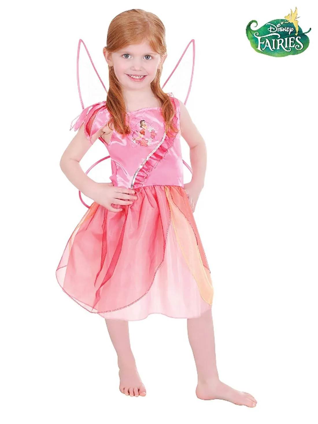 Available Online. For instore availability please call us on 07 3279 1555 One of the classic Disney Fairies from Pixie Hollow, red coloured Rosetta is the magical garden-fairy, quick witted, sassy and spritely. She spreads pixie dust all around with her elfish friends Tinker bell, Silvermist and Periwinkle. A story-book favourite dating back to everyone’s childhood, Rosetta also stars in many Walt Disney films including Tinker Bell (2008), Tinker Bell and the Lost Treasure (2009), Tinker Bell and the Great Fairy Rescue (2010) and the Secret of the Wings (2012). So, fly high with your wings and wand to become the beautiful Rosetta today! INCLUDES Layered tutu dress with attached satin bodice and sequin and tulle feature crossing the bodice Bodice features printed fairy design and glittery tulle pieces embellishing the skirt Sleeves are elasticised straps with soft feathery fabric at edging Pair of detachable wings on soft wireframe with tulle attached to the back of the dress with velcro tabs This is an officially licensed Disney product