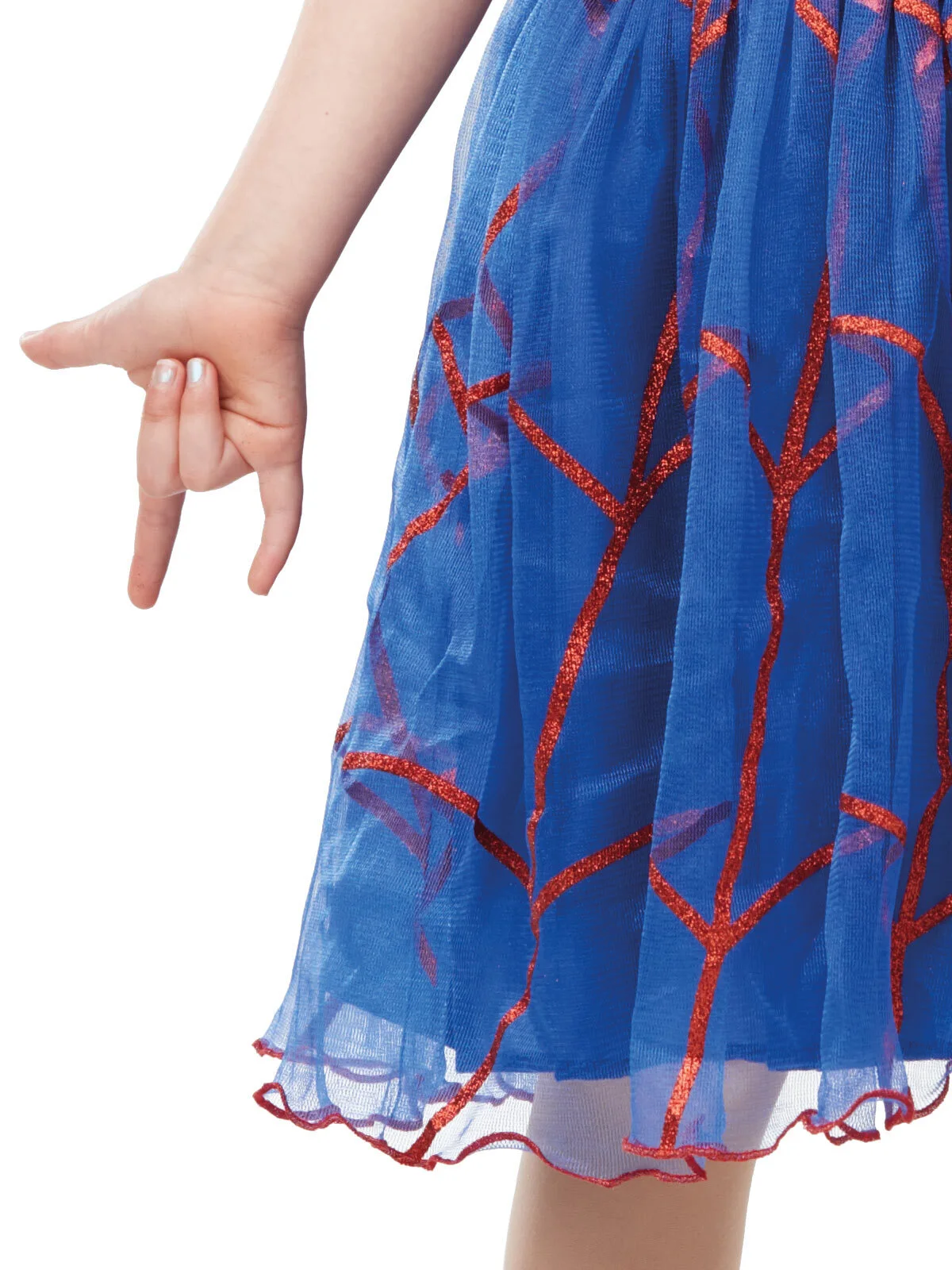 Available Online. For instore availability please call us on 07 3279 1555 Most people know the name Peter Parker, but do you know May Parker, the human arachnid “Spider-Girl”, daughter of Spider-Man? A favourite female character in the Marvel Comics, Spider-Girl has many of the same abilities as her father, including superhuman strength, can leap several stories high and has amazing reflexes – all used in the fight against the Marvel villains in the ultimate Marvel Universe. INCLUDES Dress in velour bodice and Spider-girl emblem with attached waist sash Dress features a tutu skirt with nylon underlay and tulle overlay with glitter application on the front snd back of the skirt Eyemask with glitter detail and elastic band with velcro fasten Shoes not included This is an officially licensed Marvel product