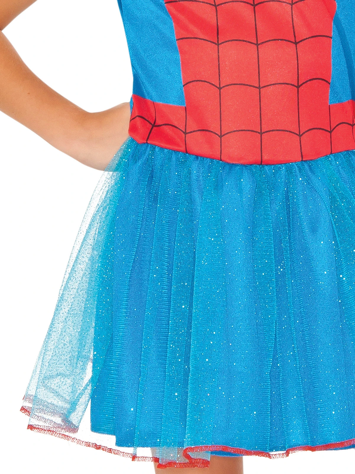 Available Online. For instore availability please call us on 07 3279 1555 Most people know the name Peter Parker, but do you know May Parker, the human arachnid “Spider-Girl”, daughter of Spider-Man? A favourite female character in the Marvel Comics, Spider-Girl has many of the same abilities as her father, including superhuman strength, can leap several stories high and has amazing reflexes – all used in the fight against the Marvel villains in the ultimate Marvel Universe.INCLUDESTutu dress with digitally printed bodice showcasing the iconic spider emblem and red and blue panelsTutu skirt with nylon underlay and tulle overlay with glitter application and red trim on the hemEyemask with digital print and elastic band with velcro fastenShoes not includedThis is an officially licensed Marvel product