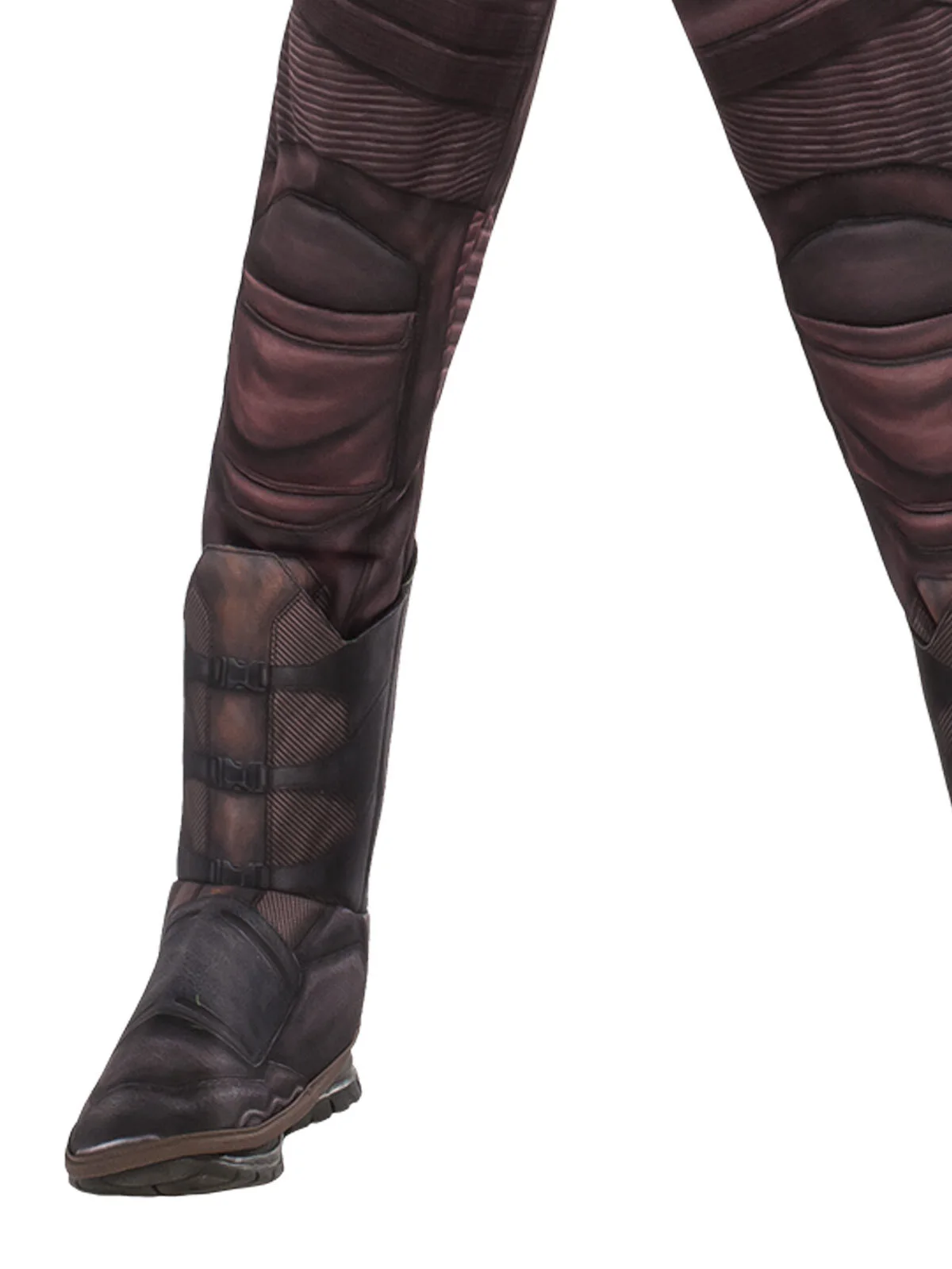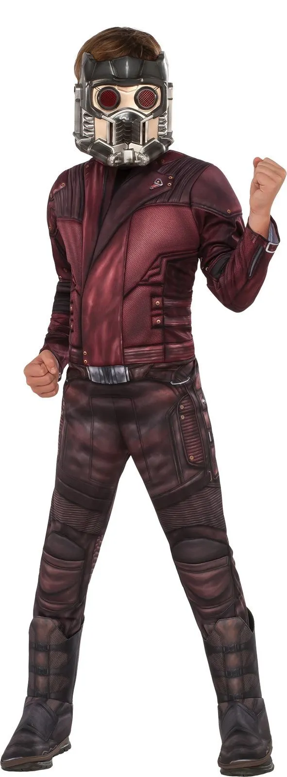 Available Online. For instore availability please call us on 07 3279 1555 A Human, Peter Quill, aka Star-Lord, is a space-outlaw from the Marvel Comics and Marvel Cinematic Universe. As one of the Ravagers, he joined forces in the team of The Guardians of the Galaxy, with partners Gamora, Groot, Rocket and Drax. Star-Lord wears a trademark space mask with red eyes so he can breathe in space. He also brings a sassy sense of humour as he battles to save the world in movies like Avengers: Infinity War!INCLUDESJumpsuit with printed jacket details on bodice plus padding with stitching detailFull length sleeves with printed details and paddingPants with printed details plus padding at knees and attached 3D boot topsMoulded mask with painted details and elastic band with velcro fastenThis is an officially licensed Marvel product
