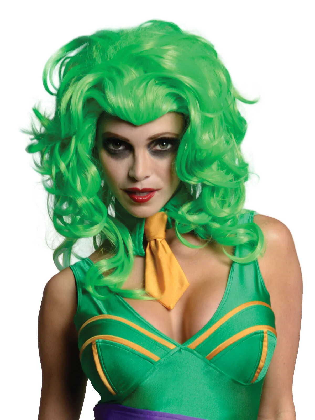 Available Online. For instore availability please call us on 07 3279 1555 A criminal master-mind and possibly one of the most infamous supervillains in the DC Comics universe, The Joker – the smiling assassin – is arch-nemesis of Batman and nearly all DC Comics superheroes. He stars in comic books, films and TV series, always wearing his painted red smile to hide his damaged face beneath, wild green hair and purple suit. Resident psychopath of Gotham City, The Joker has been played by various actors in TV series and many Warner Bros movies over the decades. Actors like Jack Nicholson and Heath Ledger have taken this crazed character to new heights of stardom. With a sadistic sense of humour, the “man who laughs” does not always get the last laugh against true heroes like the Great Batman. See The Joker play his deck of cards in films like Batman Begins (2005), Brave and Bold (2008), The Dark Knight (2008) and Suicide Squad (2016).INCLUDESBody con dress with orange stripes on the bustier and attached belt with bucklescollar with attached mini tie and velcro fastenWrist length white glovesWig with curly green hair, made of polyproylene strands and polyester fabricThis is an officially licensed DC Comics product