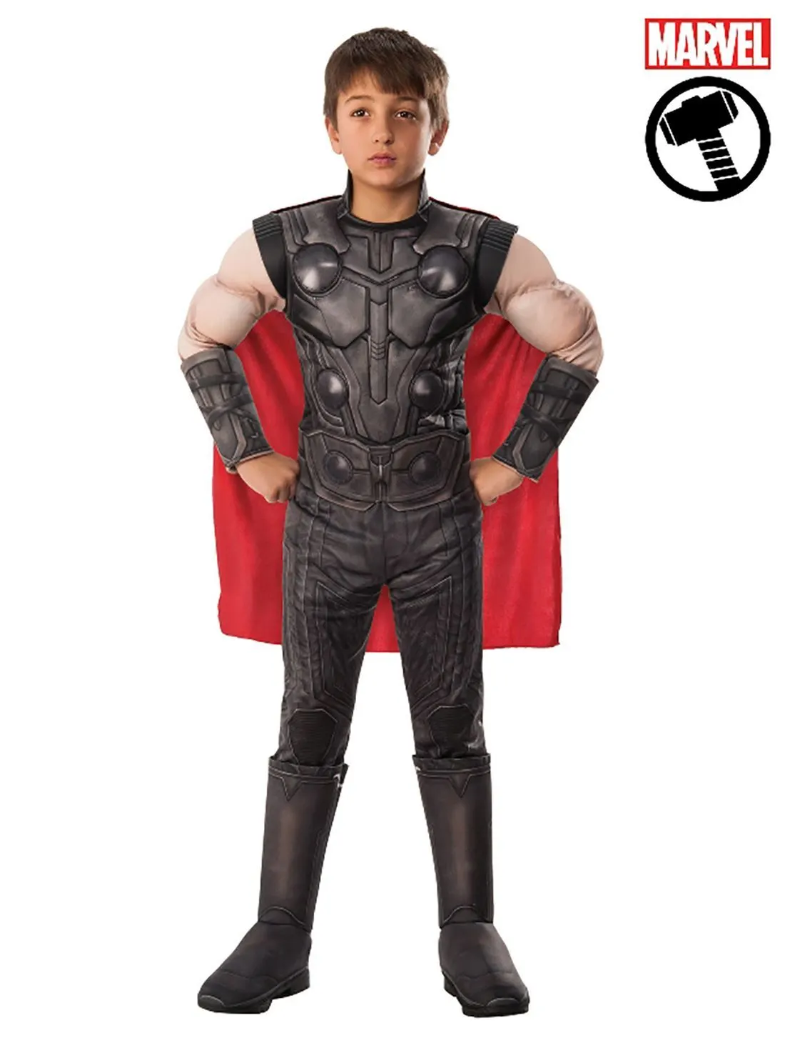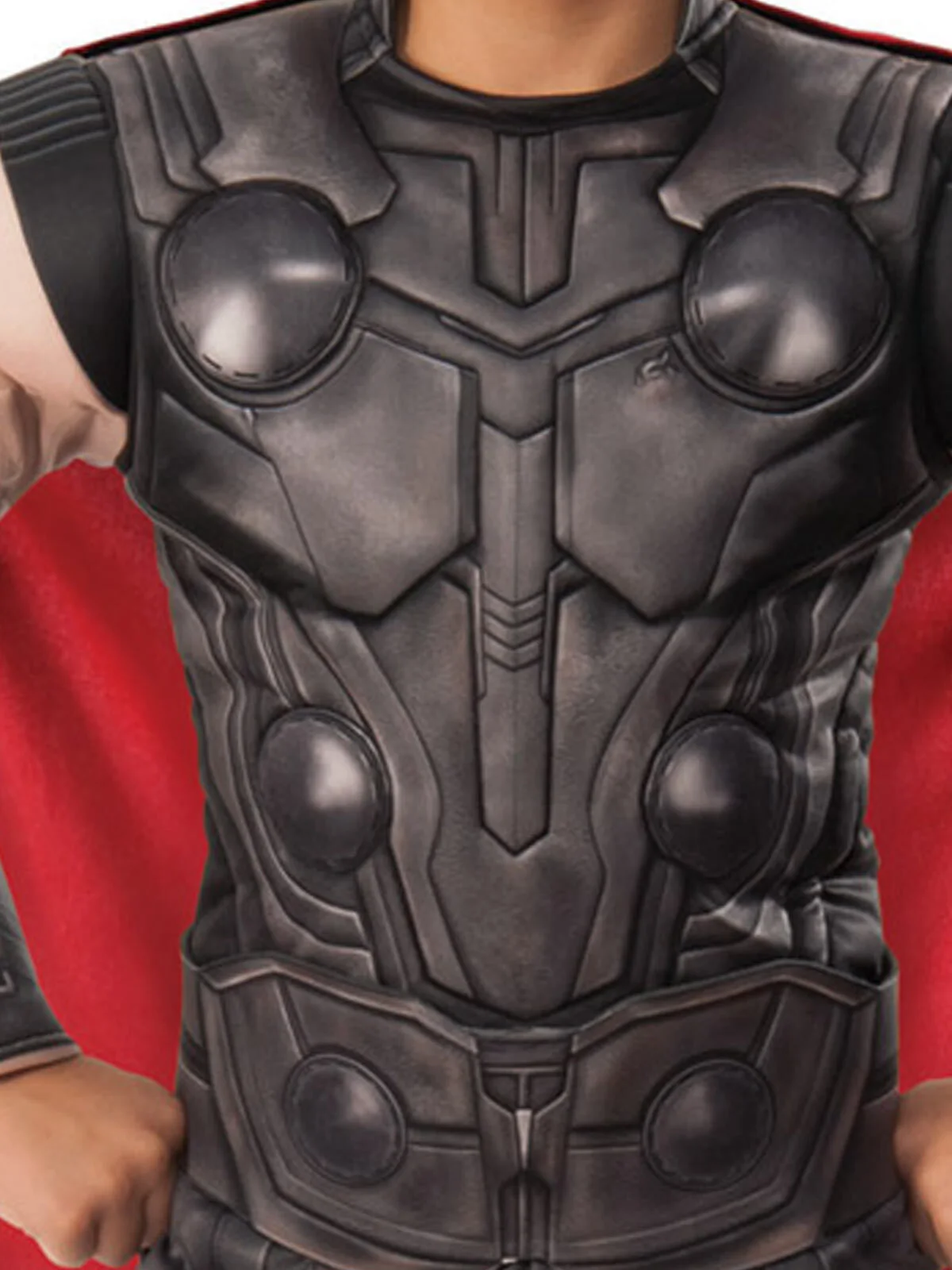 Available Online. For instore availability please call us on 07 3279 1555 He is Marvel’s Nordic God of Thunder and brother to the evil Loki. Thor is known for his super-human strength and trusty hammer, the Mjolnir as well as his new weapon of choice – the axe, Stormbreaker. Played by Australian actor Chris Hemsworth, Thor has starred with his Avenger Hero friends in many blockbuster movies in Marvel’s Cinematic Universe. From The Dark World (2013) to Age of Ultron (2015), Ragnarok (2017), Infinity War (2018) and most recently, Avengers: Endgame (2019) Thor is a true Marvel Superhero. INCLUDES Top with digitally printed fibre-filled bodice with stitching details plus full-length sleeves with fibre-filled muscles and attached 3D gauntlets Pants are digitally printed with attached 3D boot tops Digitally printed belt with velcro fasten Red fabric cape to knee height with velcro tabs at the rear This is an officially licensed Marvel product