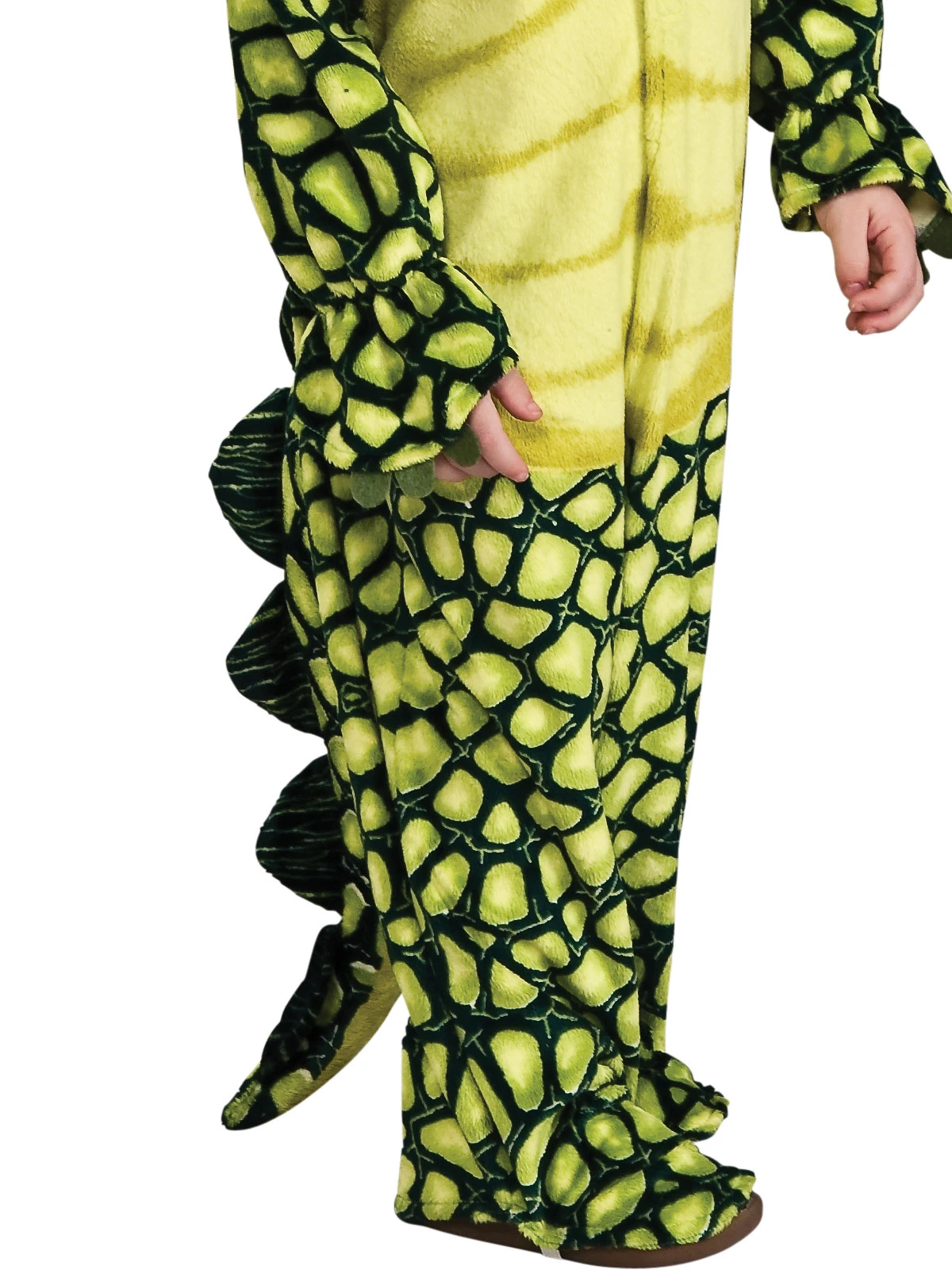 Available Online. For instore availability please call us on 07 3279 1555 Roar like a Dinosaur! Tyrannosaurus-Rex, Velociraptor, Diplodocus, Pterodactyl, Pteranodons – there were so many! These pre-historic beasts were feared by cavemen and ruled the earth millions of years ago. Gnashing their teeth, throwing about their massive tails and stomping their feet, dinosaurs are a mystery of eras long gone and a fascination for many people still today. So, don’t become extinct! Don your scales and oversized teeth to become a mighty creature from the beginning of time. INCLUDES Plush all-in-one jumpsuit with front zipper closure and 3D felt scales at shoulders Jumpsuit features a detachable plush head with fibre-filled 3D dinosaur facial features and a triceratops frill feature Fibre-filled plush tail is attached and ha scales running the full length Shoe covers attach overshoes with elastic strap