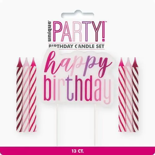 Unique 1 Happy Birthday Candle And Spiral Candles – Pink 12 Pack