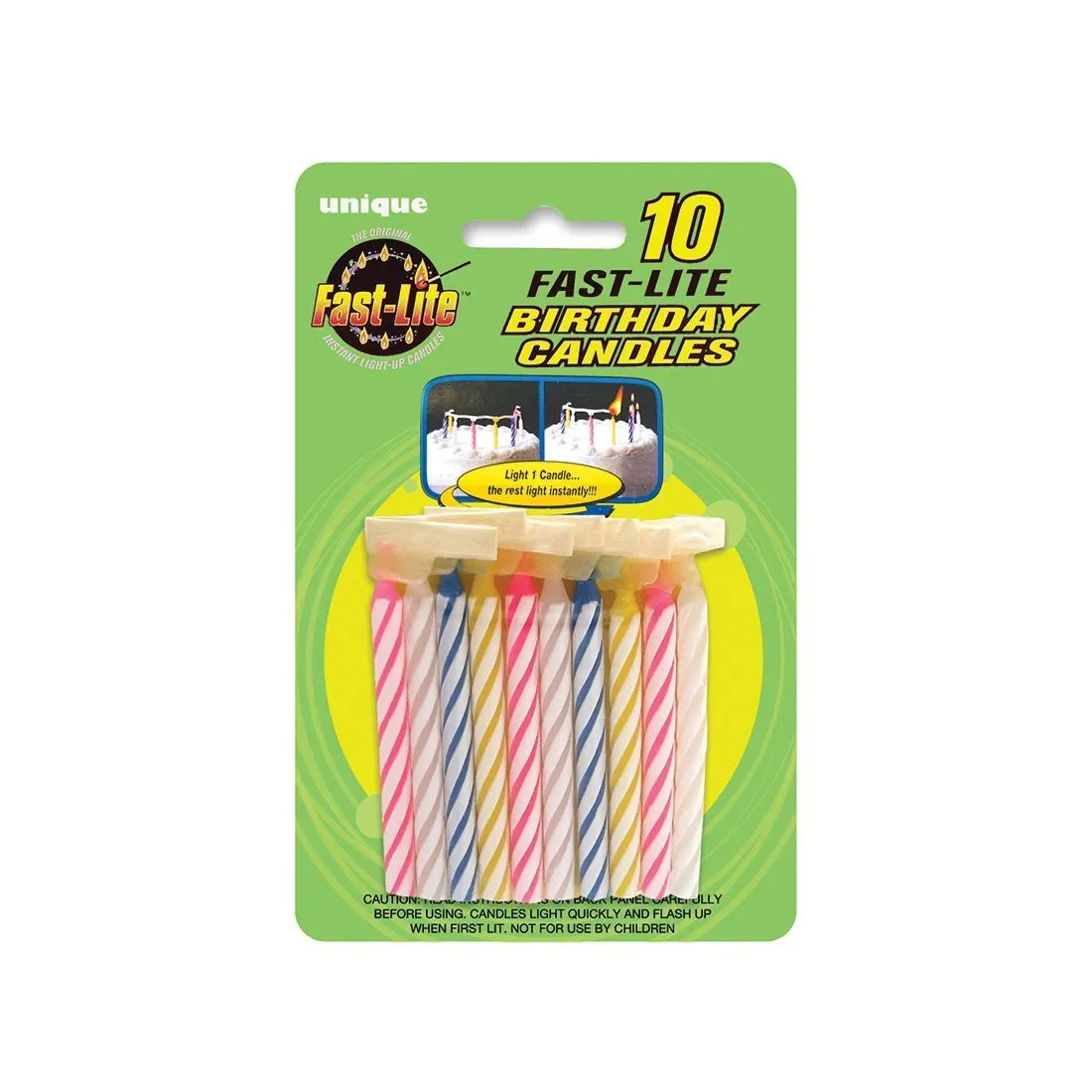 Includes 10 Assorted Fast-Lite Candles Whether it’s for a birthday, baby shower, anniversary or any other celebratory occasion, these candles are sure to be a huge hit on top of any cake Let’s face it, candles can be very boring. Brighten up your cake decoration skills with these unique candles to make your cake stand out from the crowd No harmful chemical High-Quality Coordinate with other party supplies and party tableware