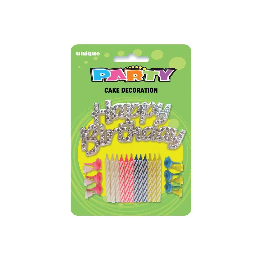 Unique 12 Candles And Holders And Happy Birthday Cake Topper