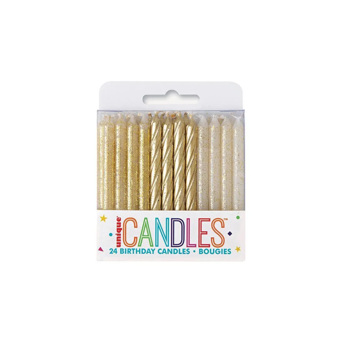 Unique 24 Gold & Gold Glitter Assorted Spiral Candles